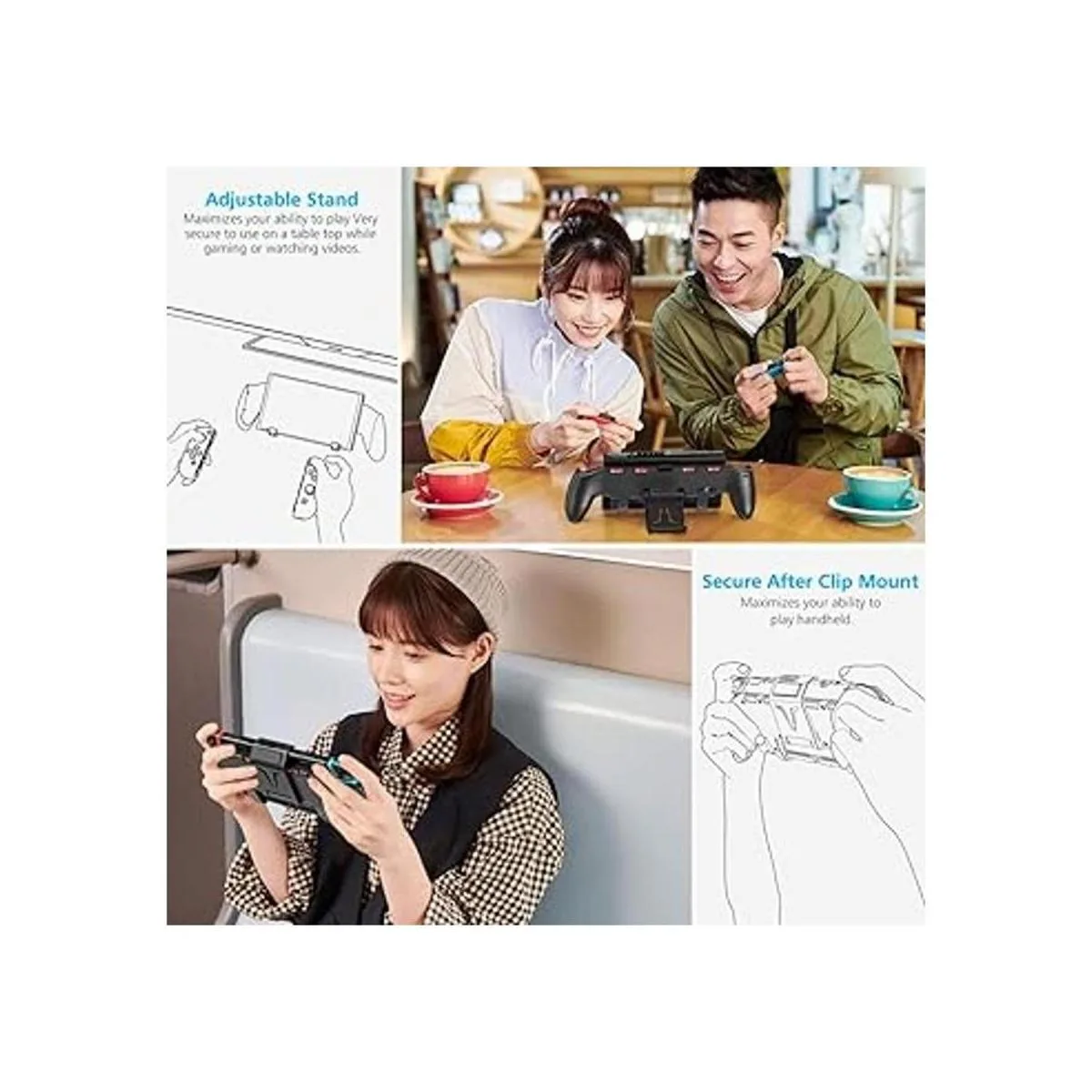 Ergonómico y cómodo: este agarre cuenta con ranuras para 5 juegos adicionales, un soporte ajustable que es seguro para usar en una mesa mientras juegas o ves videos, también se engancha en el interruptor en modo portátil.
