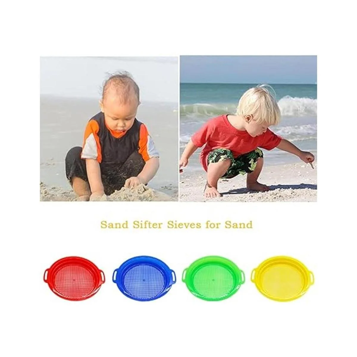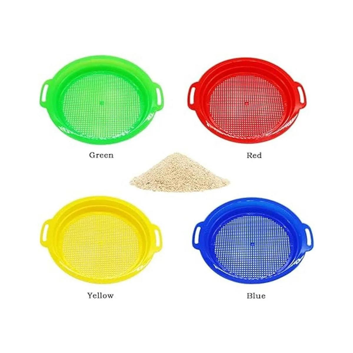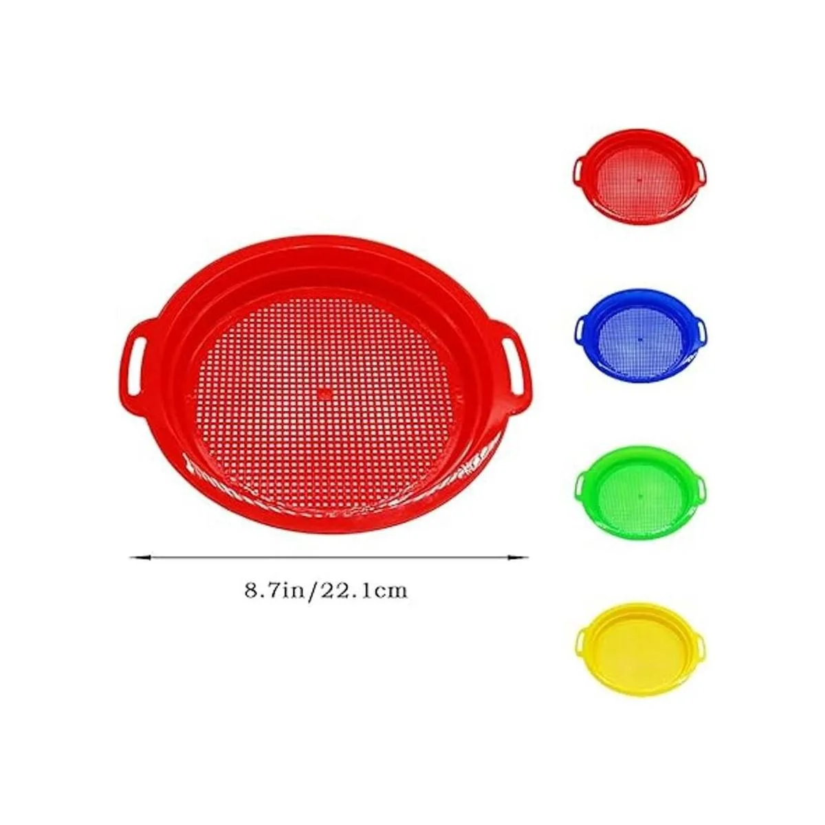 Cantidad: hay 4 tamices de arena de plástico en 4 colores: rojo, azul, amarillo y verde, cantidad suficiente para que puedas divertirte en la playa.