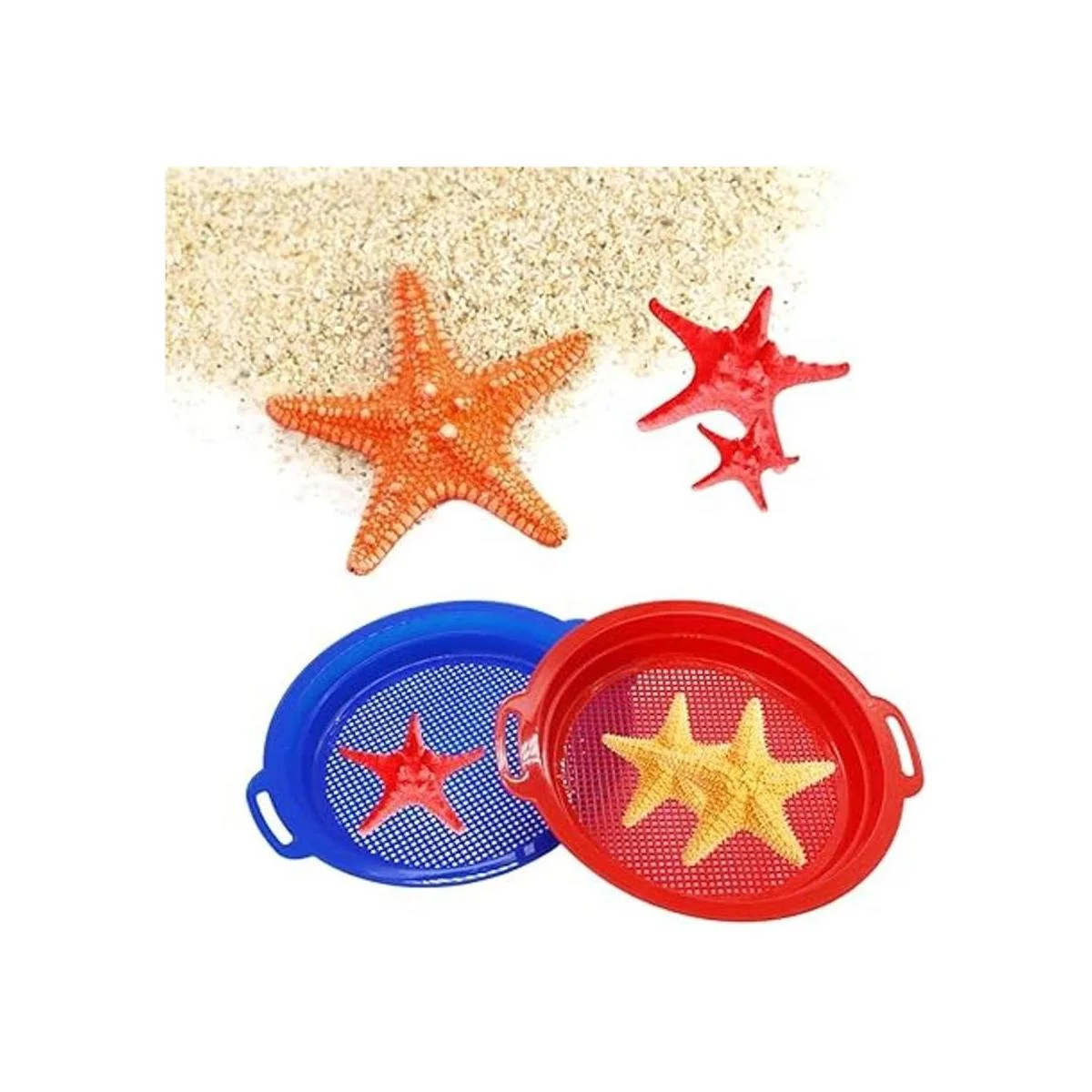 Ventajas: cada tamiz de arena tiene un par de asas, fácil de agarrar para los niños, puede ser un gran regalo para enviar a tus amigos, haciendo que el verano sea más divertido y relajante.