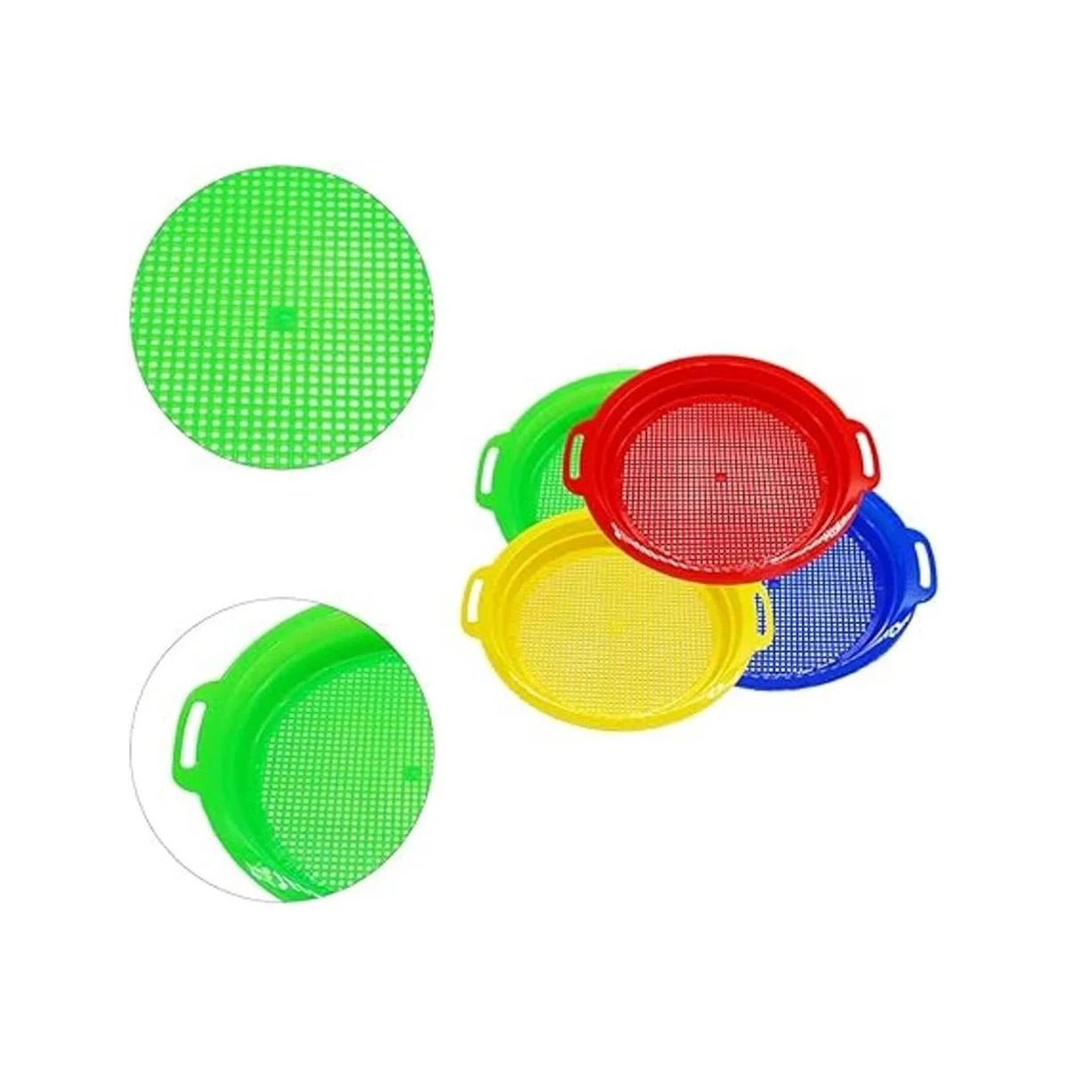 OJYUDD 4 tamices de arena multicolores, tamiz de arena de plástico, tamiz de arena para arena y playa rojo, azul, amarillo y verde