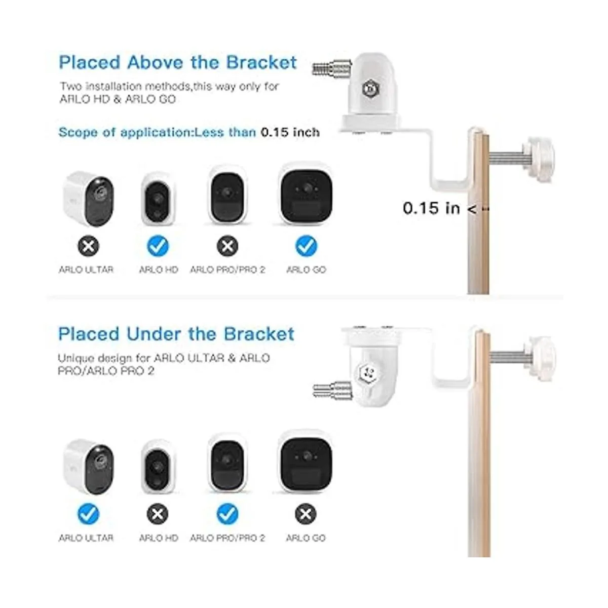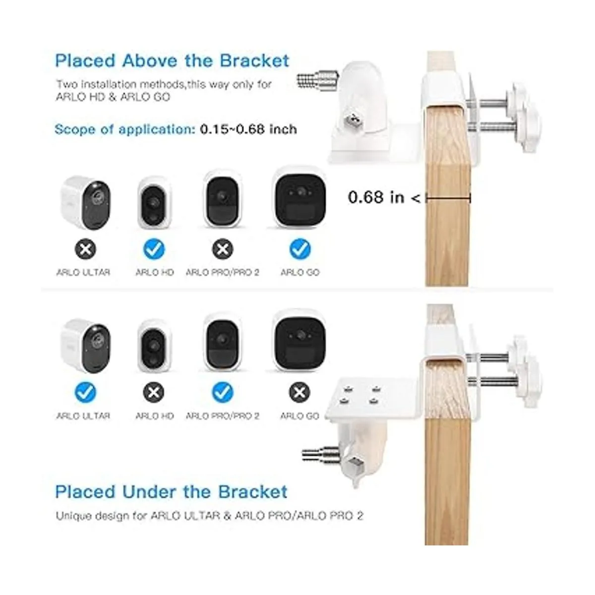 Estos soportes de canalón para cámaras Arlo son resistentes para uso en exteriores. Todos los artículos de OkeMeeo han pasado antes del envío. Encuentra más accesorios para Arlo en nuestra tienda con descuento. Skin para Arlo Pro 2: B07CM4RXTH; soporte para poste para Arlo: B08LVKKPH2; cargador de 30 pies para Arlo Ultra: B07TQ5MVW7