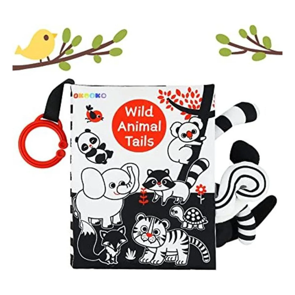OKOOKO Soft Cloth Book for Baby Animals Tails Book High Contrast Baby Bath Book NonToxic Crinkle Washable Sensory Stroller Toy Early Education Toy for Babies Infants Toddlers Kids