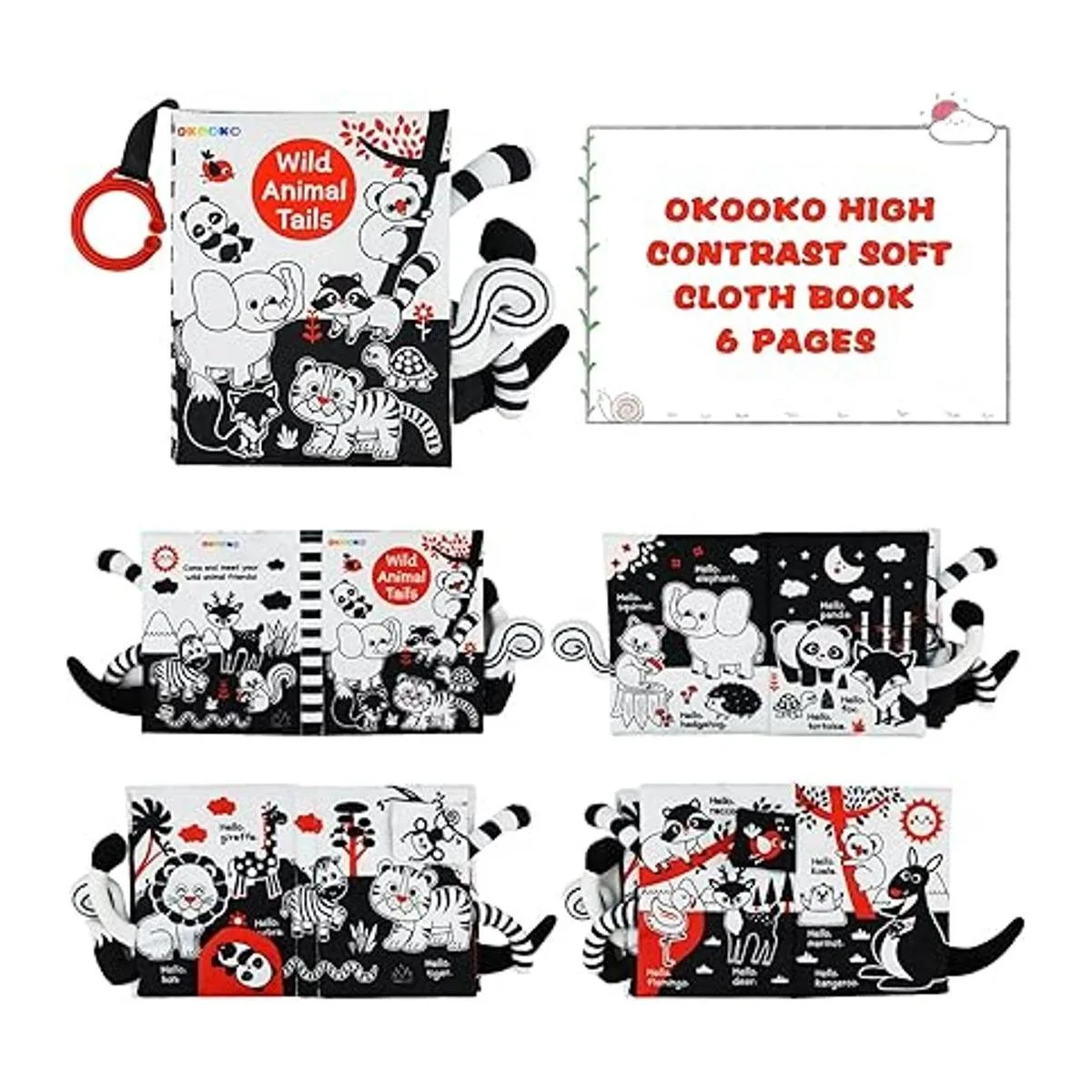 EARLY EDUCATIONAL TOY: Your baby can learn different animals through OKOOKO tails book, he/she can develop basic discrimination ability of patterns and animals. Soft interactive book pages introduce animals through bold patterns and fun interactive features, pages include fabric flaps to lift up for peekaboo fun, it will be a great start of baby early education