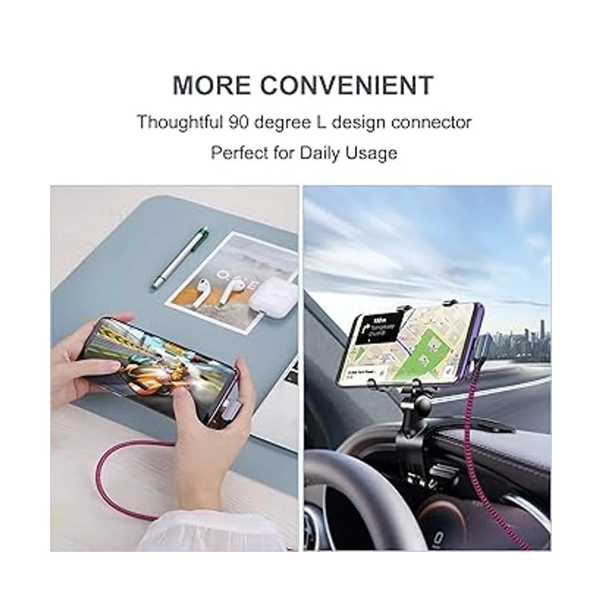 Puerto de ángulo único de 90 grados: el conector de diseño en L de 90 grados es más cómodo de usar cuando se carga, como jugar, ver videos o leer. También reduce los tiempos de flexión del conector para prolongar la vida útil del cable. Nota: compatible con fundas de teléfono con un grosor de hasta 0.079 in
