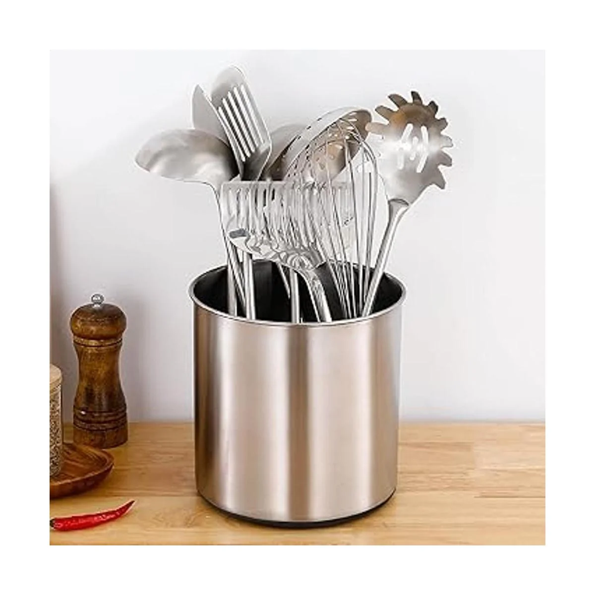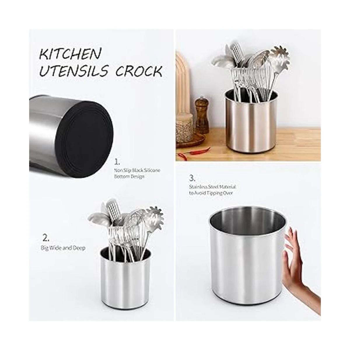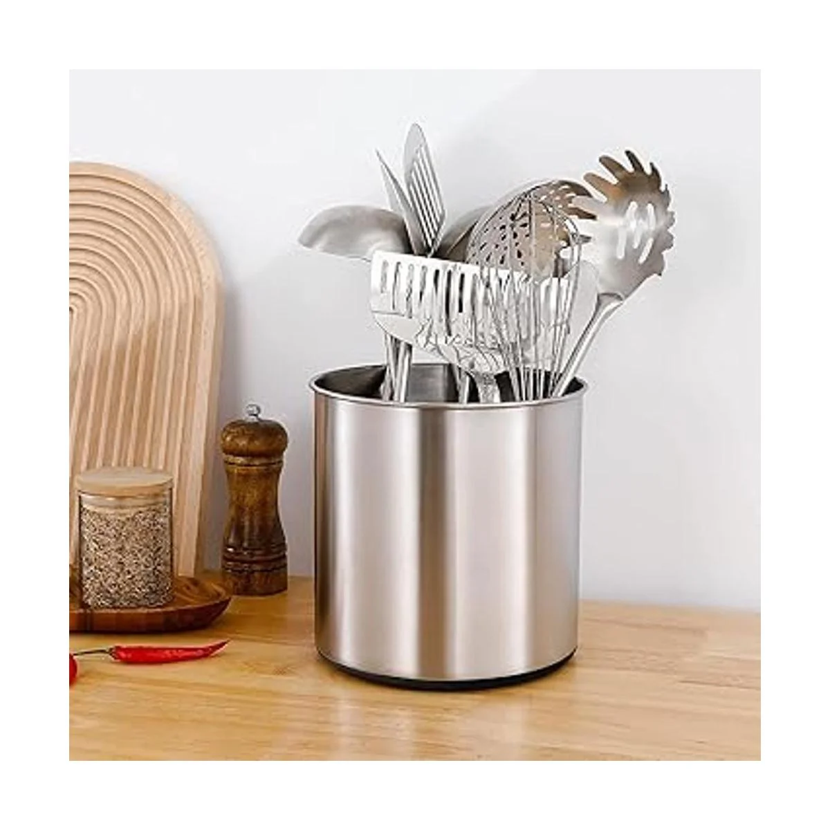 Diseño minimalista de estilo nórdico: soporte para utensilios de cocina antideslizante de silicona en la parte inferior que puede mantenerlo en su lugar. Acero inoxidable extremadamente duradero, perfecto para uso en mesa o mostrador
