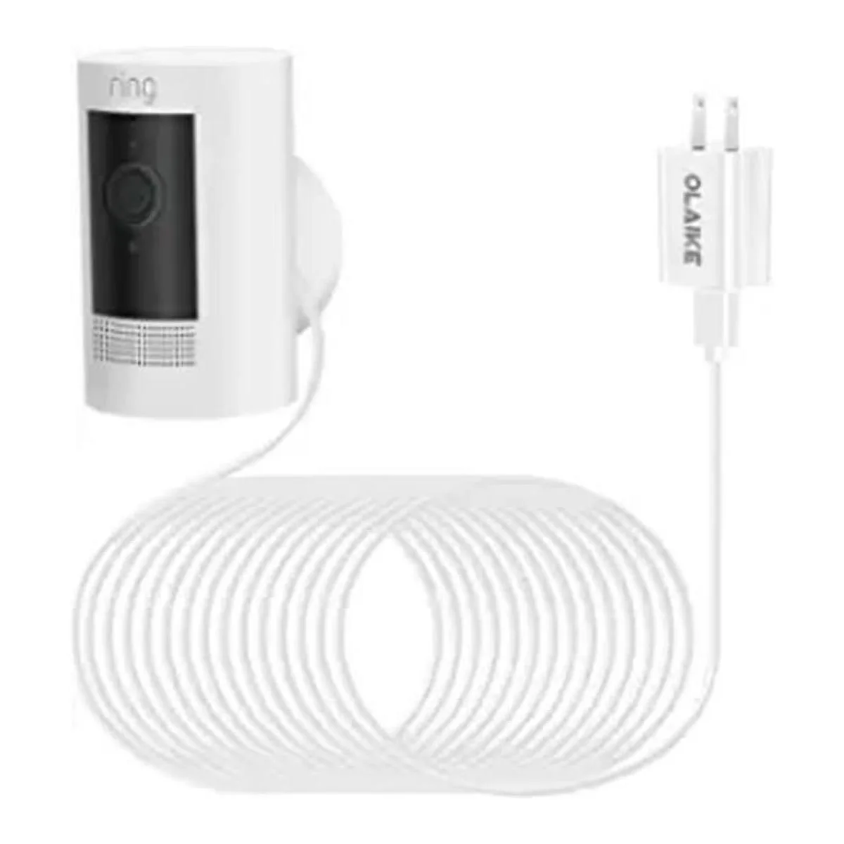 OLAIKE Cable de carga de 26.2 ft26 pies con adaptador de corriente continua compatible con batería de leva de 3 generación2 generación y batería de cámara de proyector, cable resistente a la intemperie para cargar continuamente tu cámara, color blanco