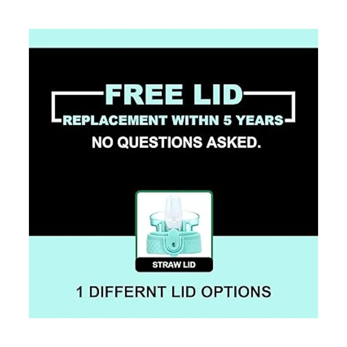 OLDLEY Botella de agua para niños con tapa de pajita, botellas de agua de 15oz irrompibles a prueba de fugas sin BPA con marcador de tiempo, para viajes, deportes, gimnasio, 1 tapa, turquesa