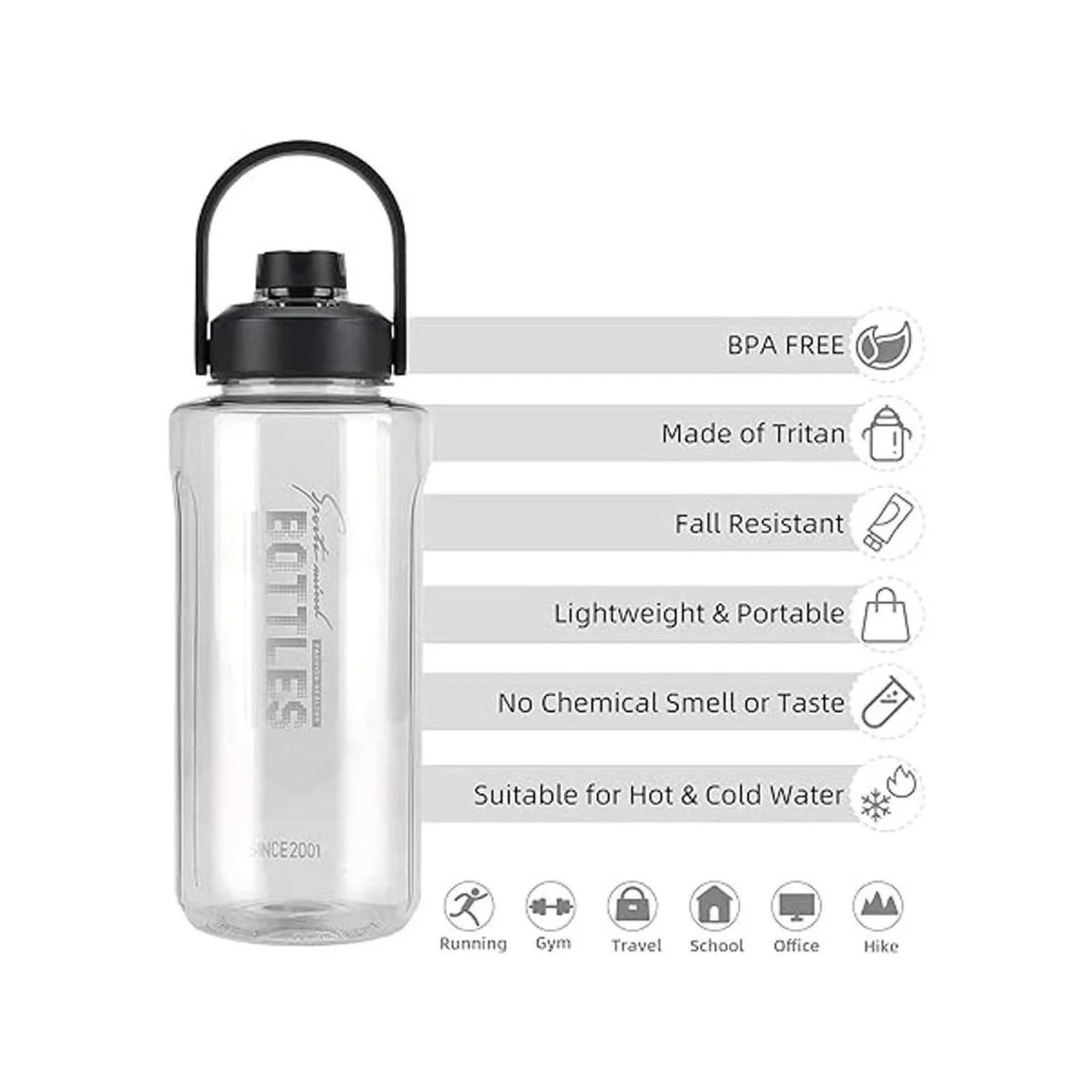 Aspecto claro: esta botella de agua grande mantiene en el interior toda la hidratación saludable que tu cuerpo necesita. Con aspecto transparente que te ayuda a comprobar la cantidad real de agua que ingesta fácil y claramente. Es divertido y fácil para cualquier objetivo de fitness, incluyendo pérdida de peso, ganancia muscular, control del apetito y salud general.