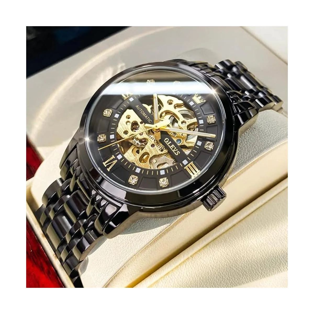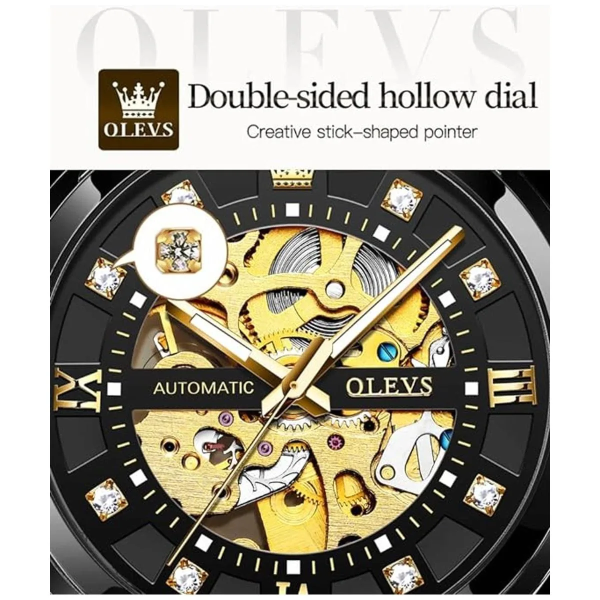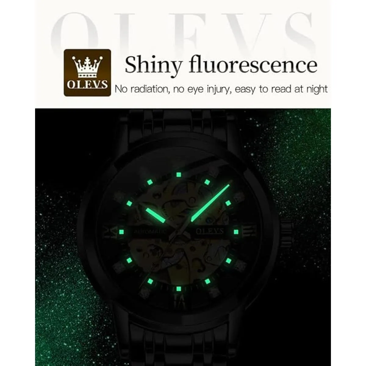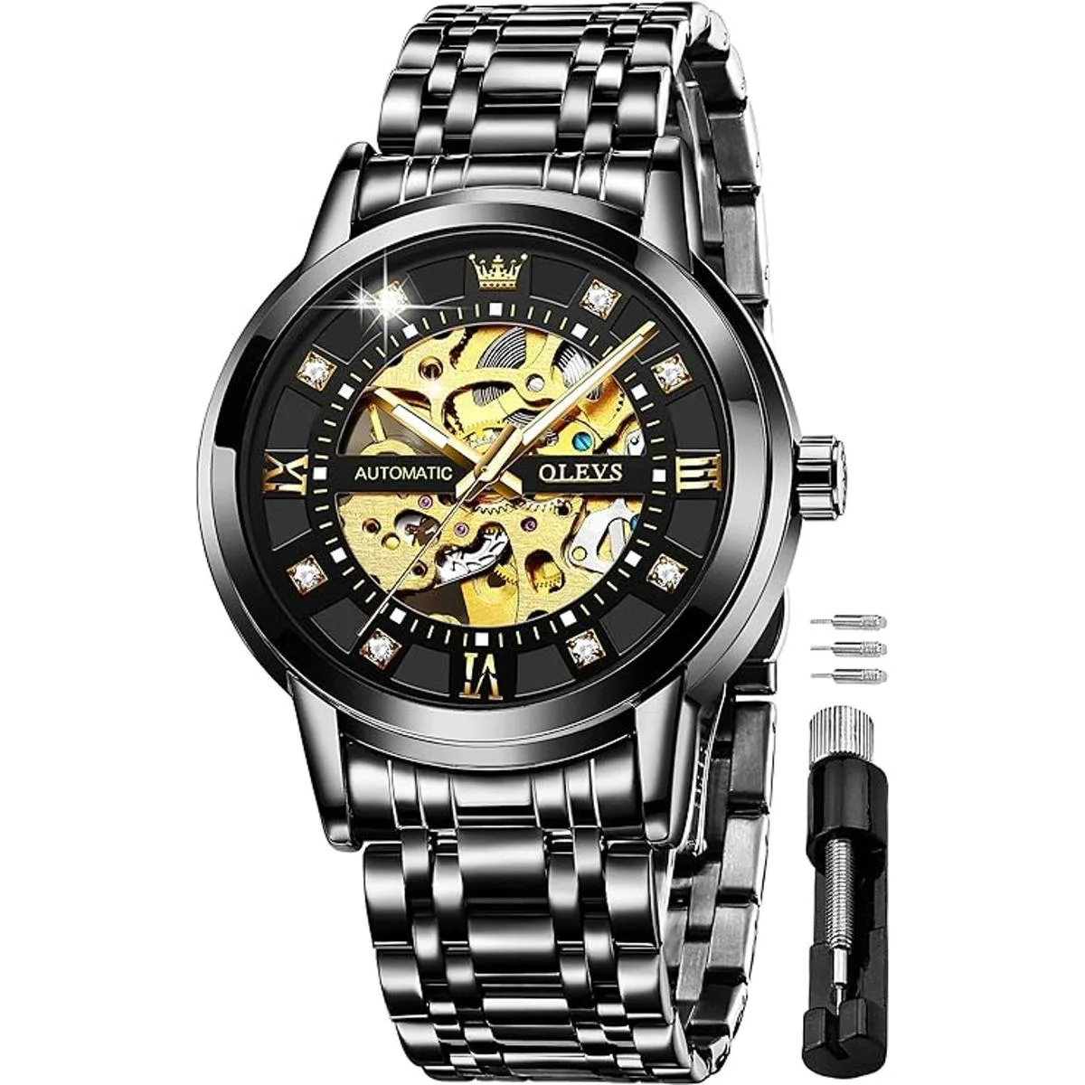 OLEVS Reloj de esqueleto dorado automático mecánico automático para hombre, vestido de lujo de acero inoxidable, resistente al agua y luminoso