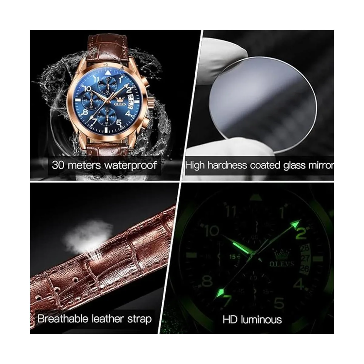 Reloj cronógrafo cómodo y duradero: cuando necesitas un reloj demuestra que valoras tu tiempo. El reloj OLEVS no solo tiene un sentido cómodo para tu muñeca, sino que también es fácil de combinar con tu ropa. Nuestra pasión nos impulsa hacia la perfección, poniendo horas y horas de trabajo para obtener un producto final verdaderamente increíble y único