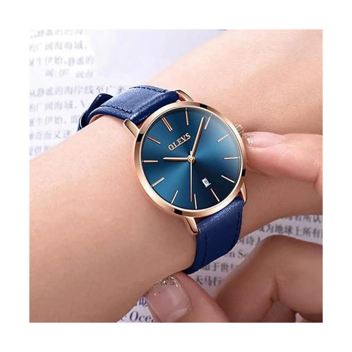 OLEVS Relojes de pulsera para mujer, ultra finos, de 0.256 in, vestido minimalista de cuarzo, impermeable, correa de cuero para citas, relojes delgados para mujer