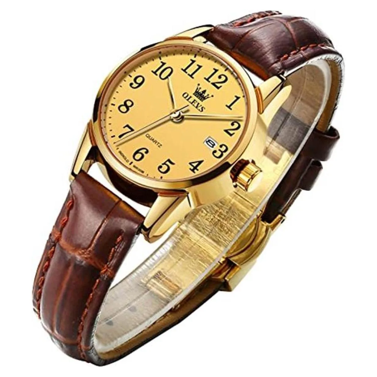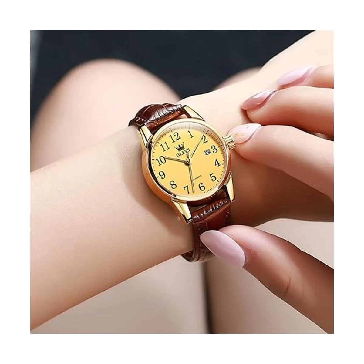 OLEVS Relojes de vestir de negocios para mujer, correa de cuero marrón, vestido de cara grande, reloj analógico de cuarzo con calendario, fecha de día, impermeable, regalo luminoso, clásico, casual, correa retro