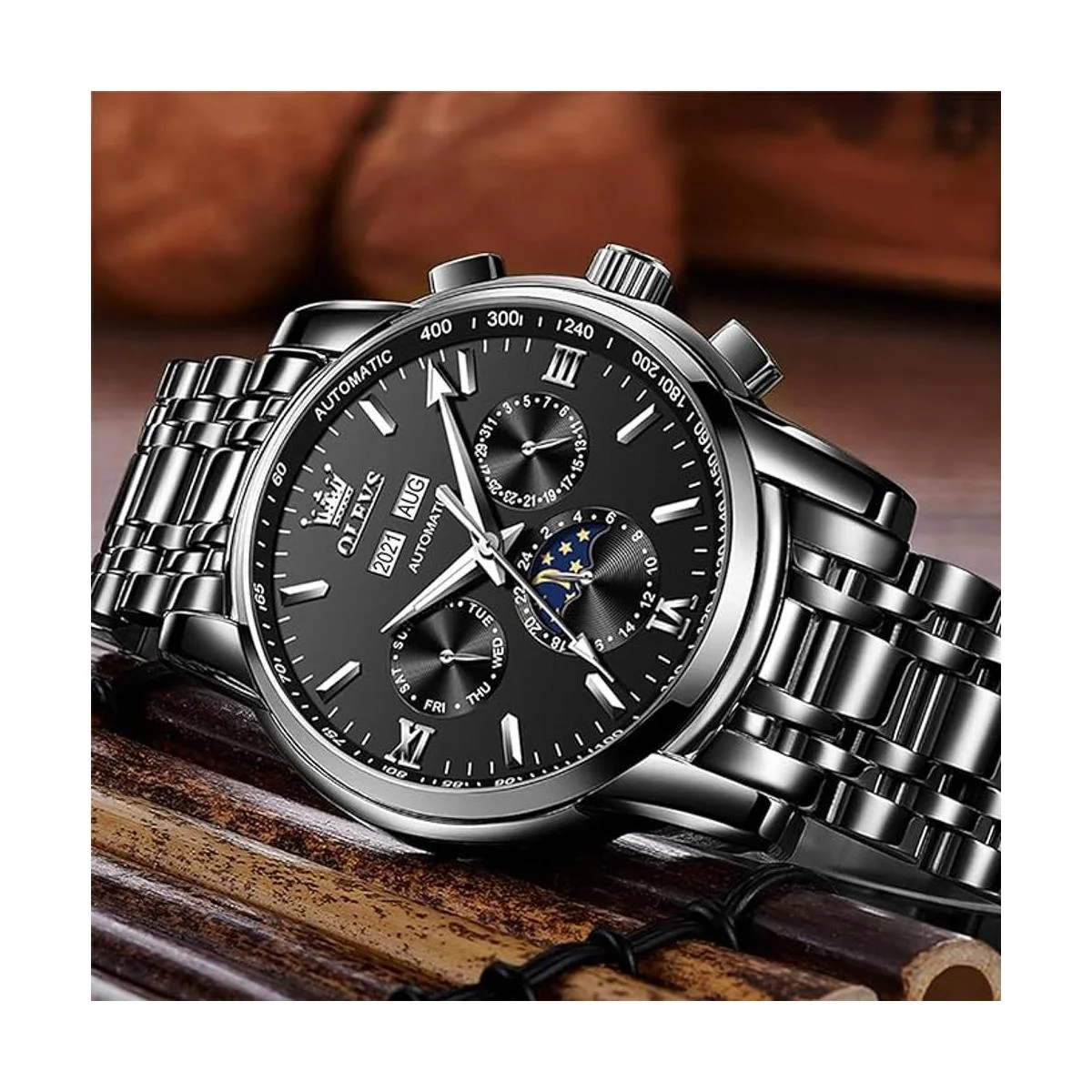 Función y posventa: reloj mecánico con calendario anual, calendario mensual, fase lunar, semana, calendario, pantalla de 24 horas, día de la semana, calendario, bisel de escala romana y manecillas e indicadores luminosos, resistente al agua hasta 98.4 ft: en general, adecuado para nadar pero no para bucear. El reloj tiene una garantía de 1 año a service life of up a 10 AOS