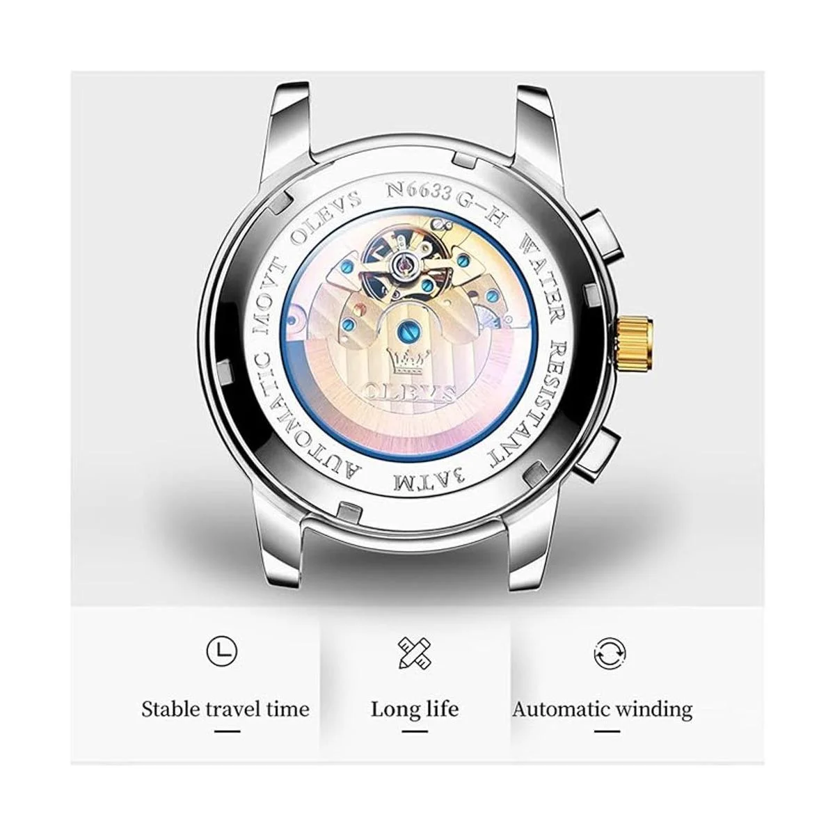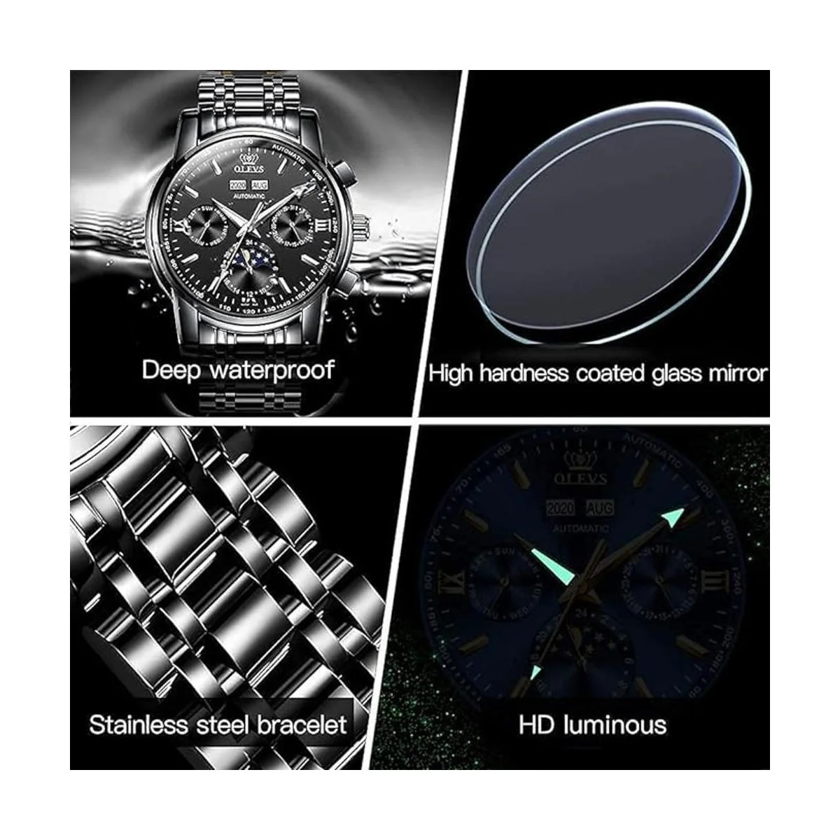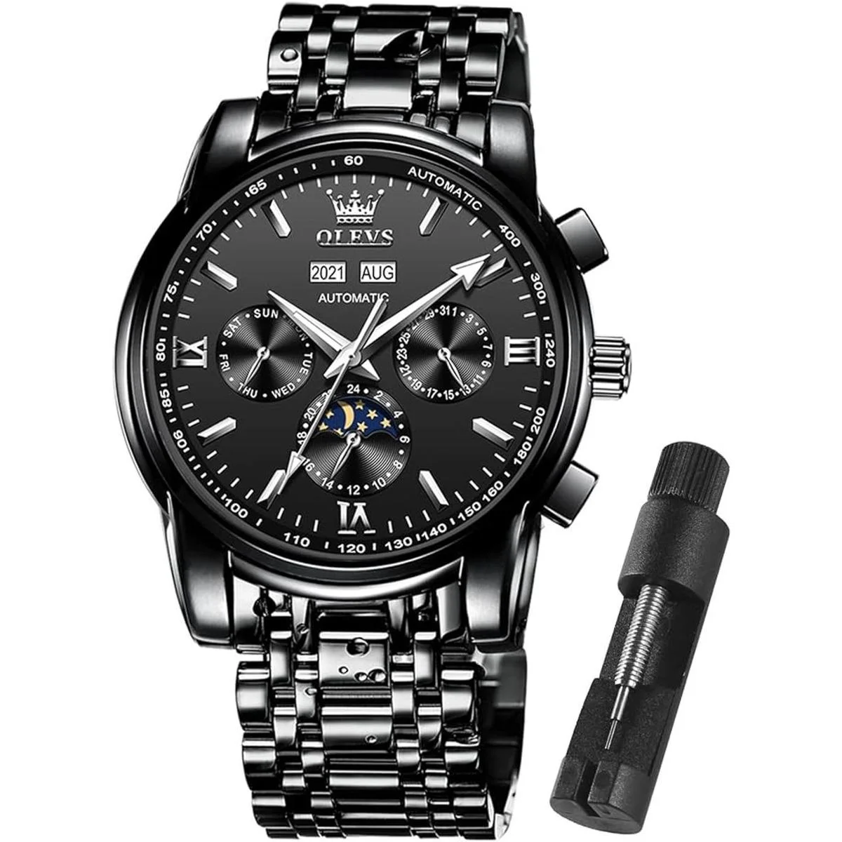 OLEVS Relojes mecánicos automáticos para hombres, de acero inoxidable, impermeables, de cuerda automática, para hombre, reloj costoso, pulsera ajustable herramienta de regalo