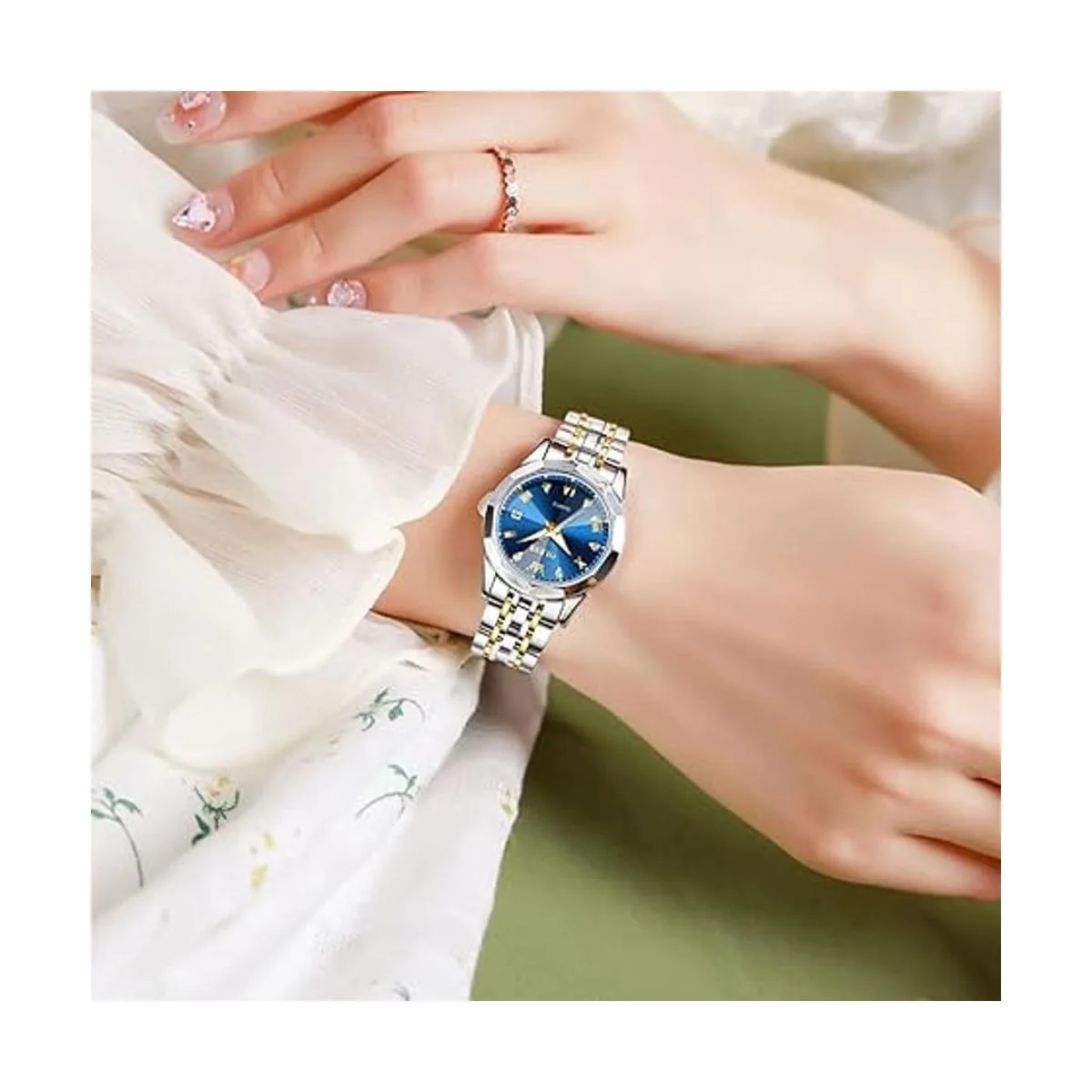 OLEVS Womens Watch Fashion Dress Diamond Female Watches for Ladies Analog Quartz Stainless Steel Waterproof Luminous Day Date Two Tone Wristwatch