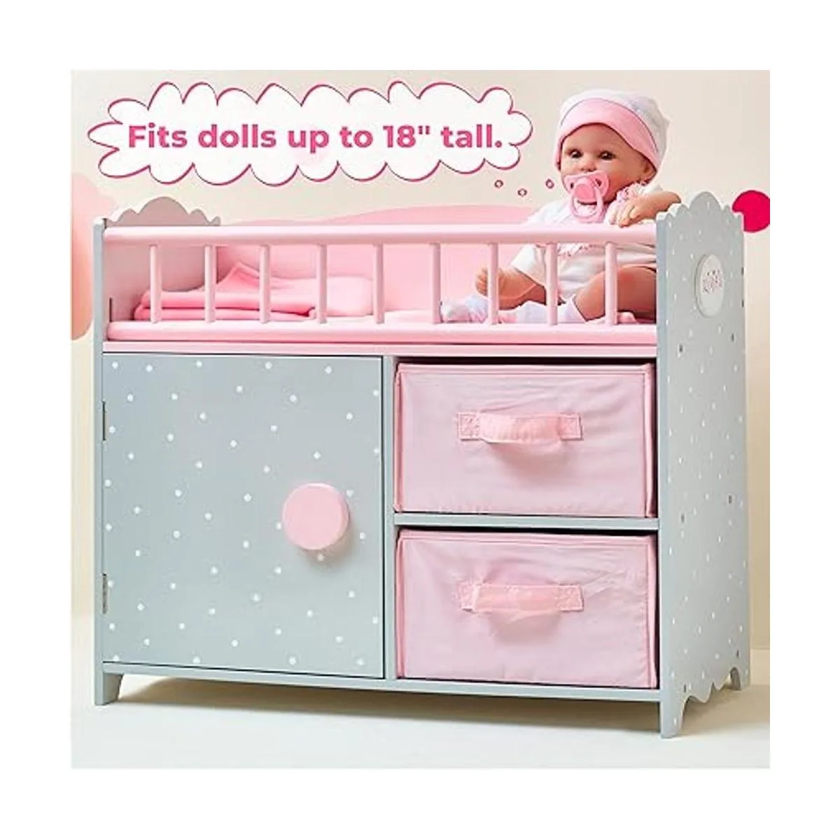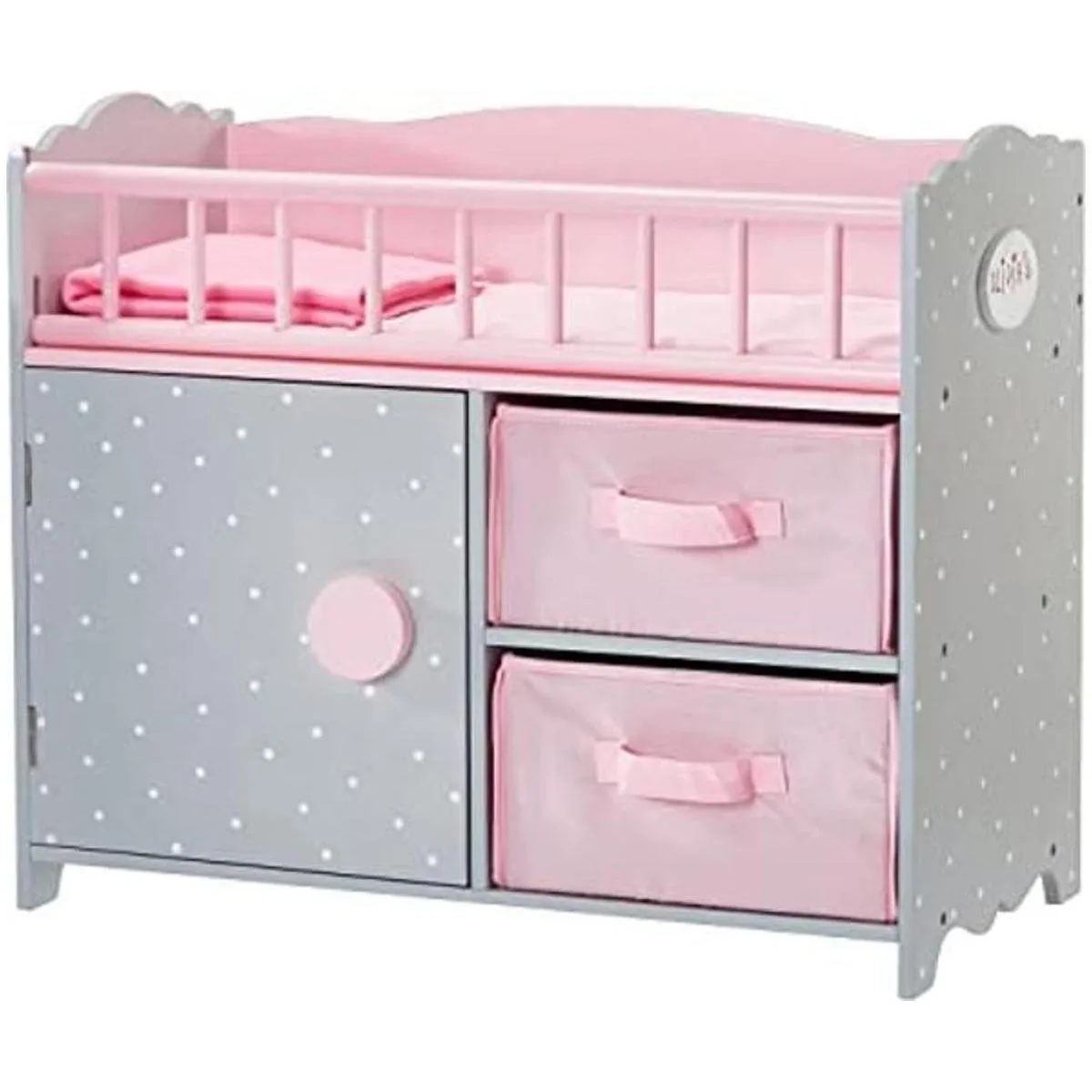 Almacenamiento integrado: amplia zona de almacenamiento debajo de la cuna con 2 cubos rosas que proporcionan almacenamiento para todos los accesorios de muñeca de bebé de tu hijo