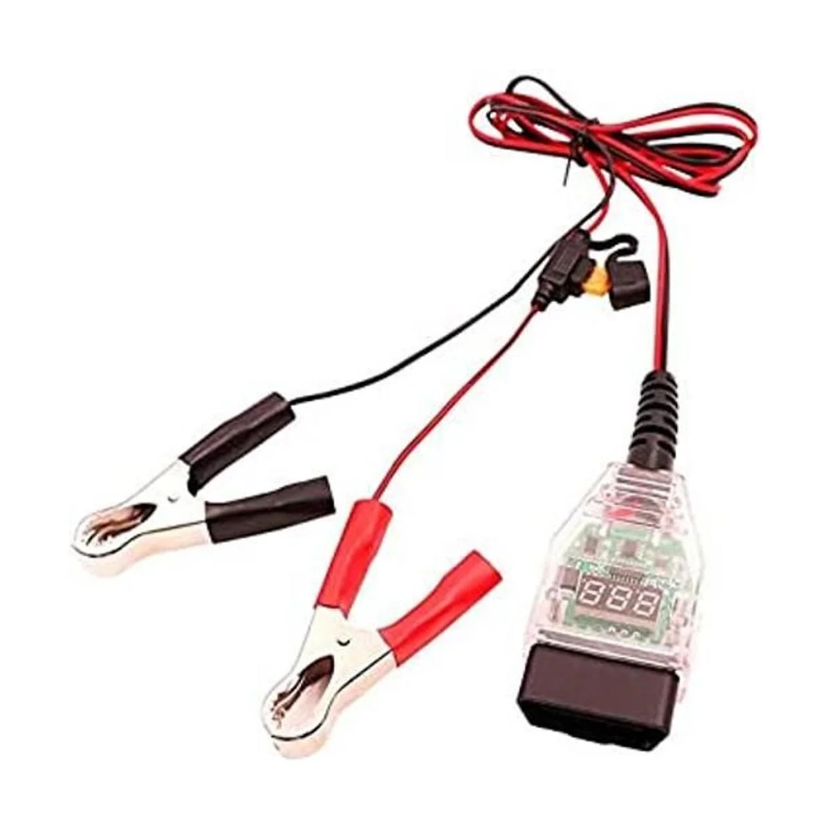 OLLGEN 4.9 ft 5 pies OBD2 herramienta de reemplazo de batería automotriz, OBD a 12 V auto computadora de coche apagado de memoria Cable de ahorro de memoria, pantalla digital OBD II Kit de detección de fugas de batería con fusible 5A