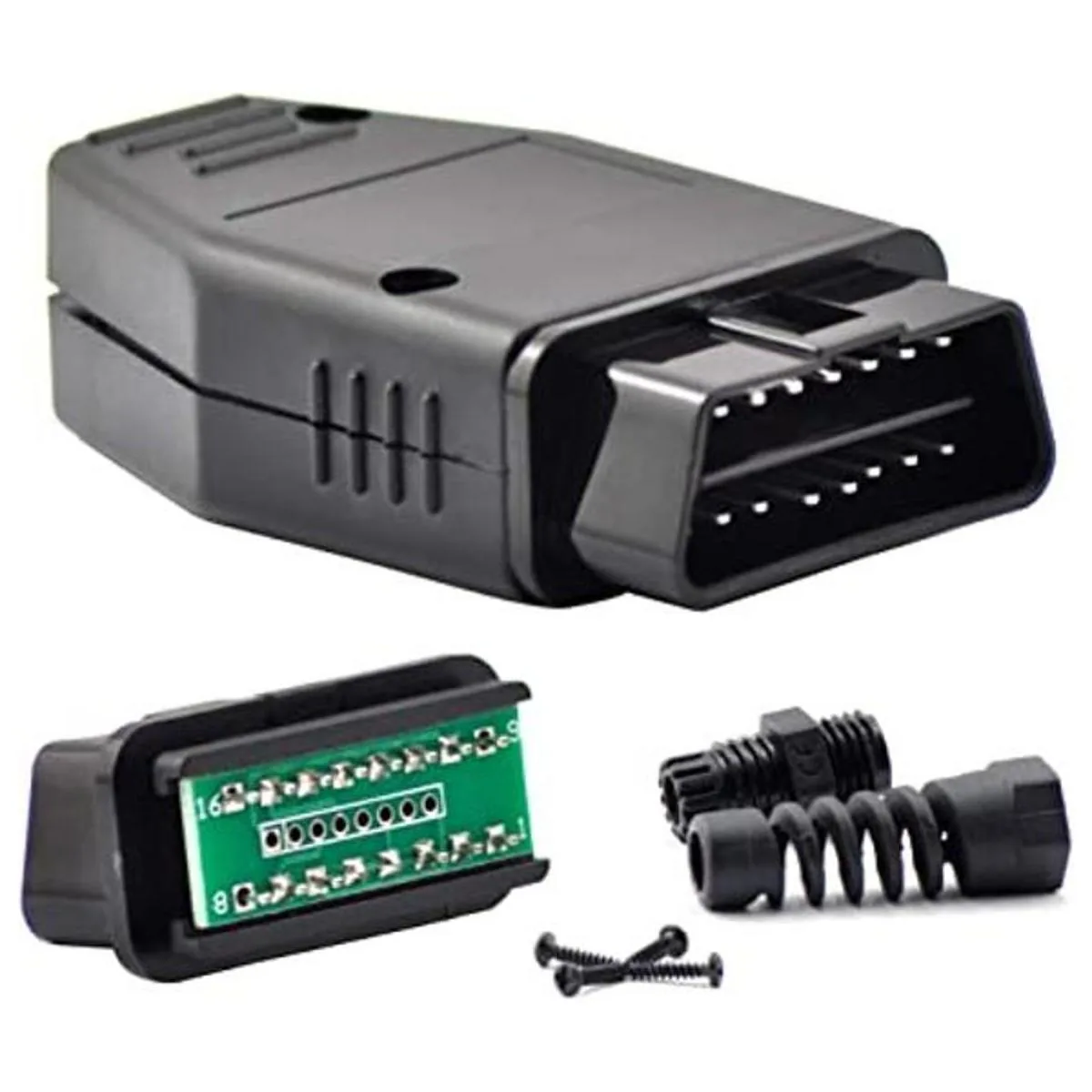 OLLGEN Auto Auto Car OBD2 16 pines, adaptador de conector macho de 16 pines, enchufe macho estándar de 16 pines, carcasa OBD, herramienta de diagnóstico OBDII PCB, Negro