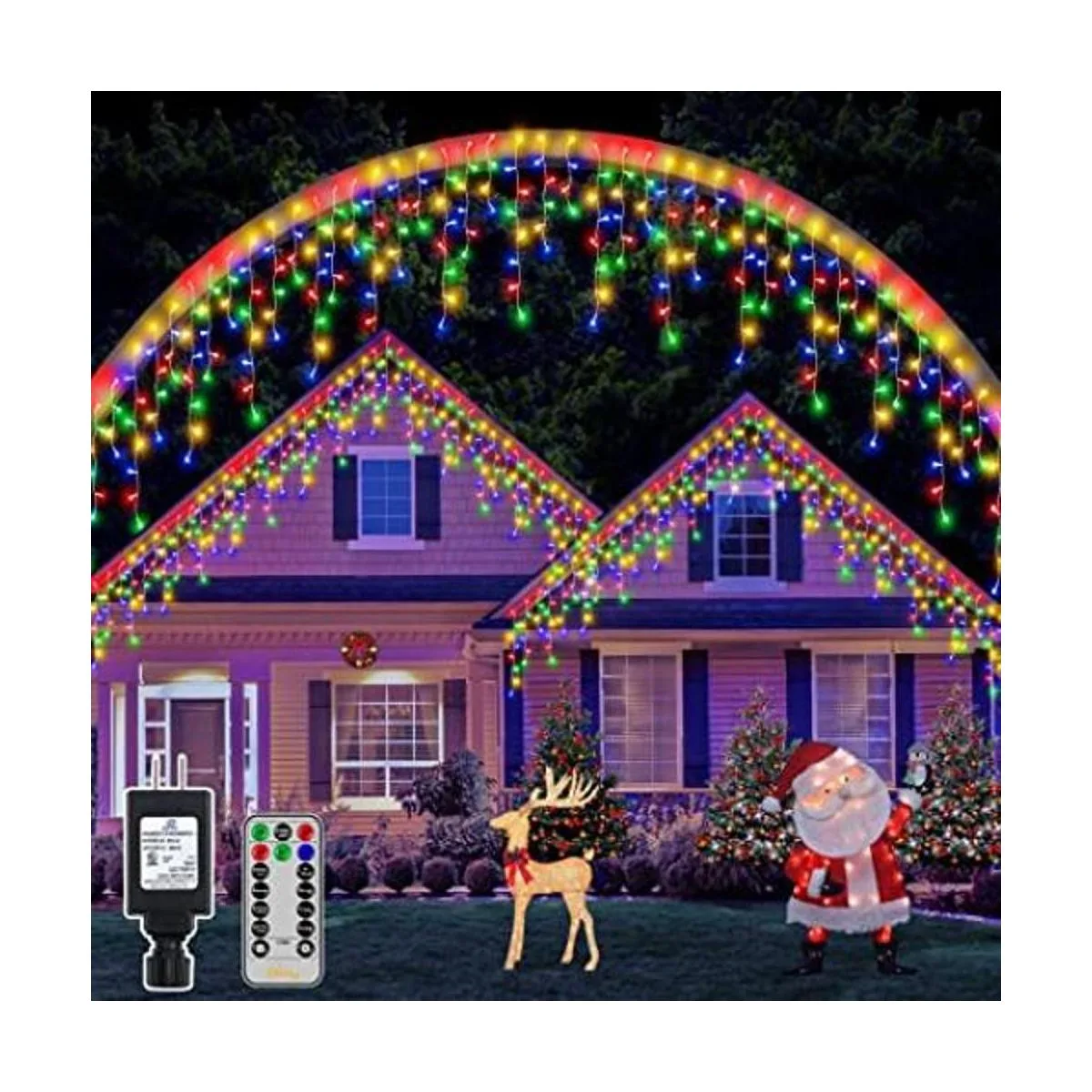 Ollny Luces de Navidad para exteriores, luces de carámbano, 594 LED, 49 pies, conectables, cadena de luces colgantes con 99 gotas, 8 modos de control remoto, alambre transparente, decoración de interiores multicolor