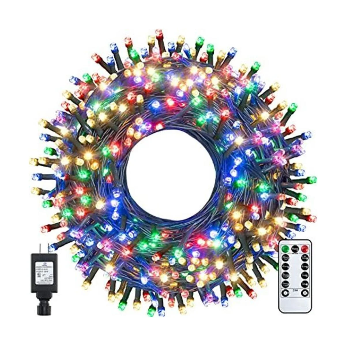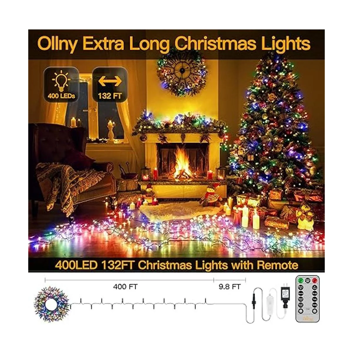 Ollny Tira de luces de Navidad para exteriores, 400 luces LED, 132 pies de longitud con control remoto, extralargas, impermeables, multicolor, 8 luces parpadeantes, con temporizador, ideales para Acción de Gracias o Navidad, decoración de interiores y exteriores para las festividades