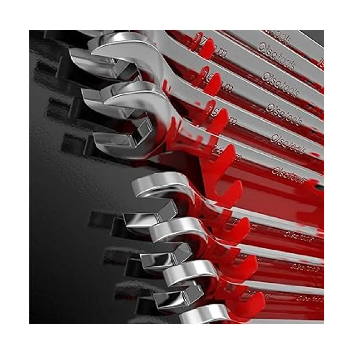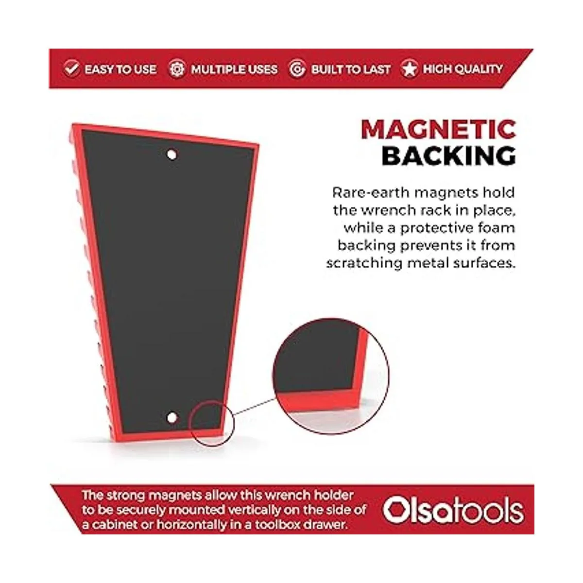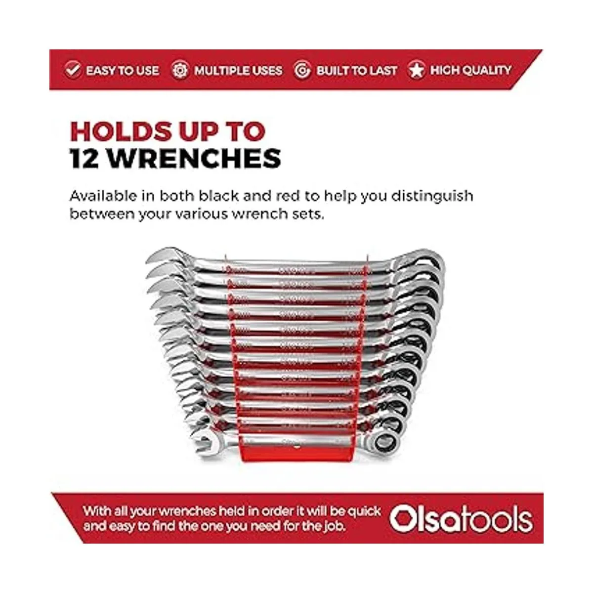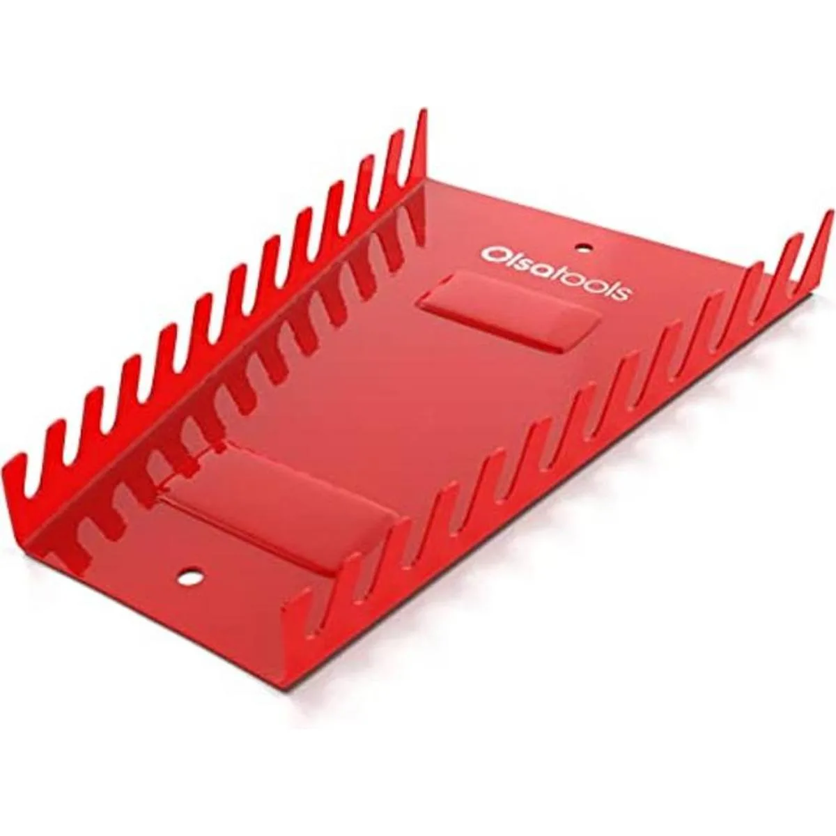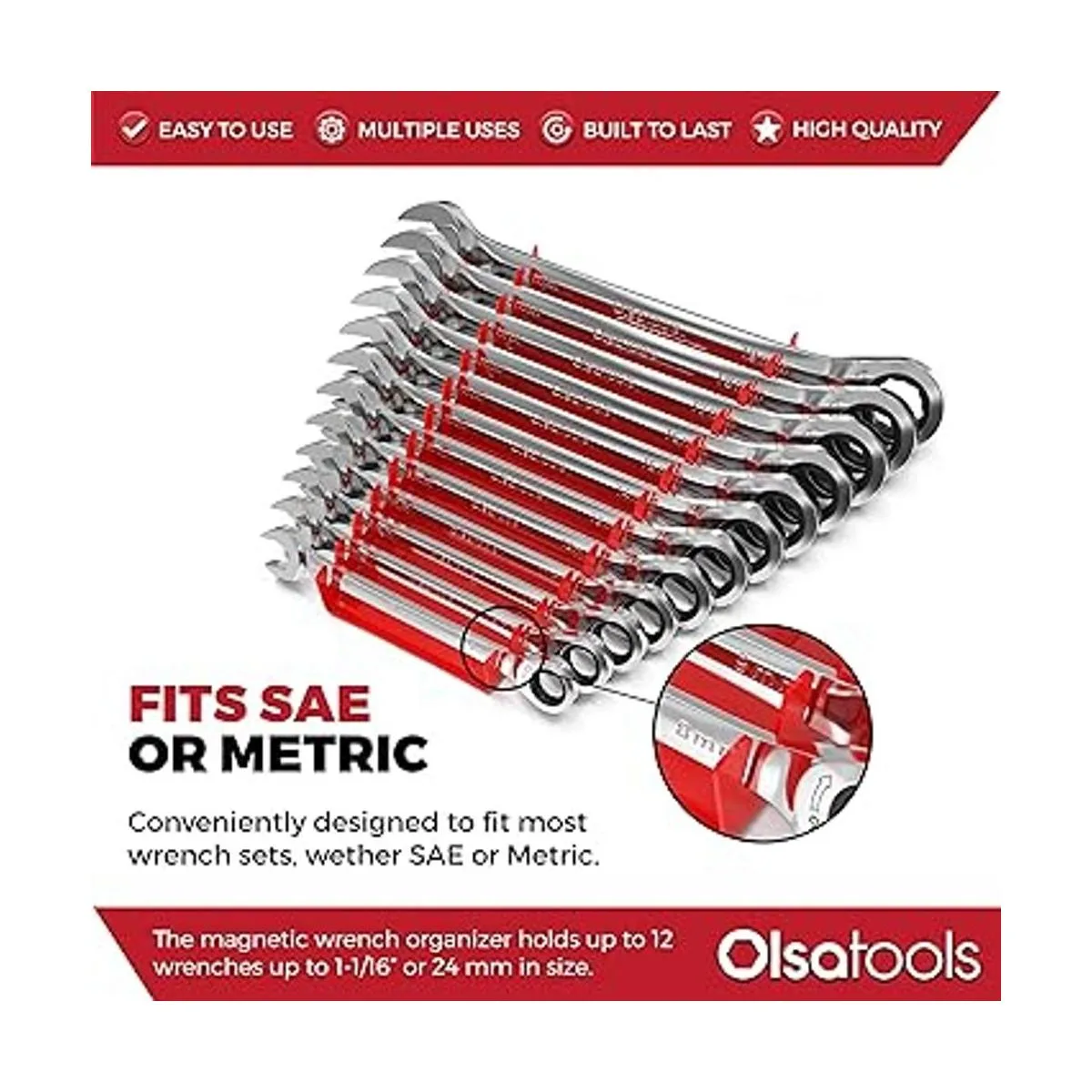 Olsa Tools Organizador de llaves de 12 piezas, soporte magnético para llaves Estante para llaves Bandeja de herramientas rechoncho Organizador de herramientas de calidad profesional Almacenamiento de llaves montado en la pared Compatible con llaves SAE y métricas Rojo