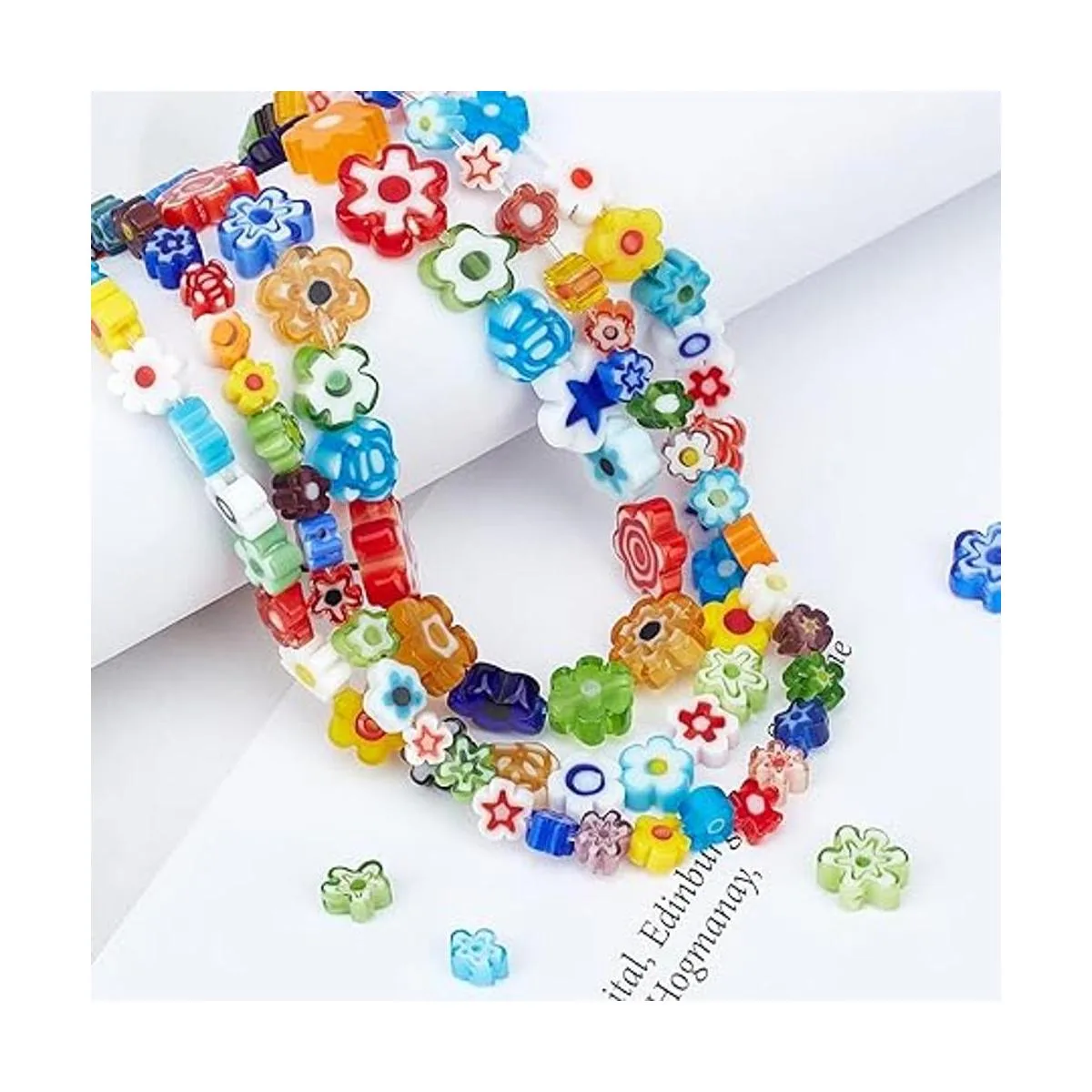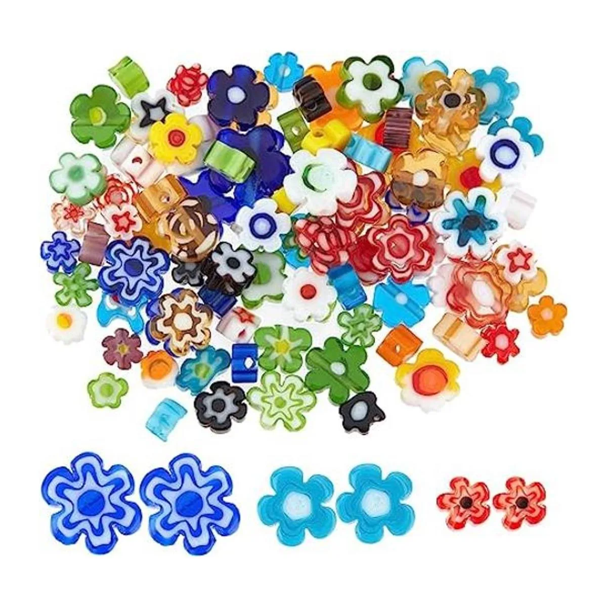 OLYCRAFT 236 cuentas de cristal hechas a mano Millefiori Lampwork 3 estilos de flores de colores mixtos de flores de vidrio sueltas para joyas, pulseras, collares y manualidades