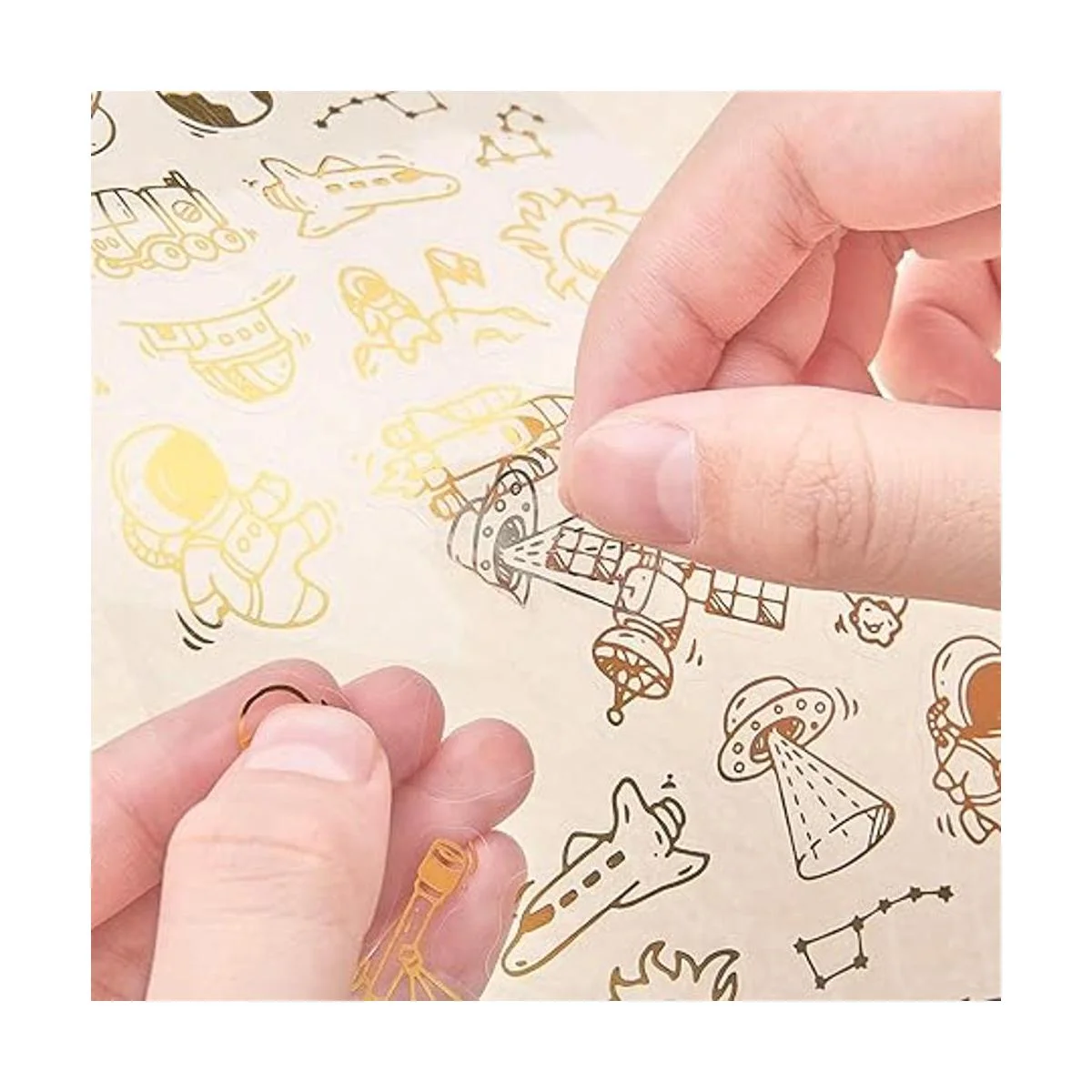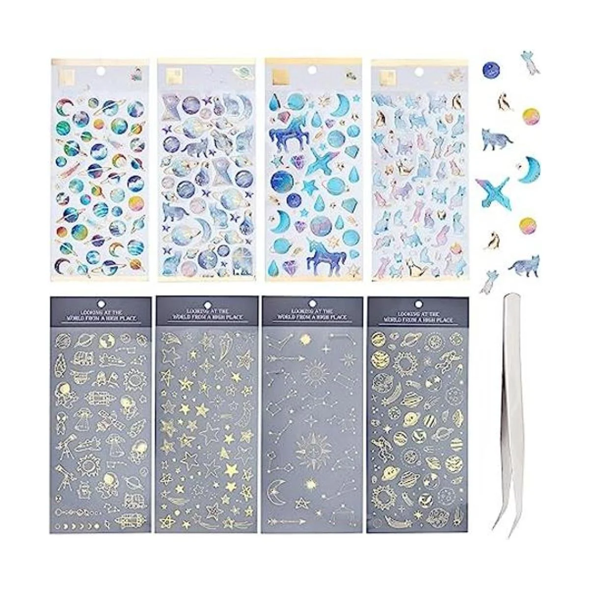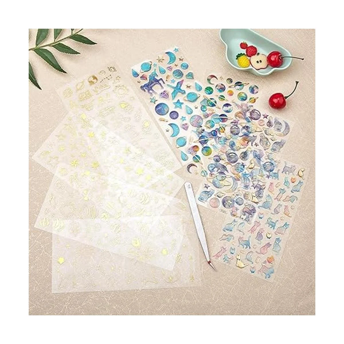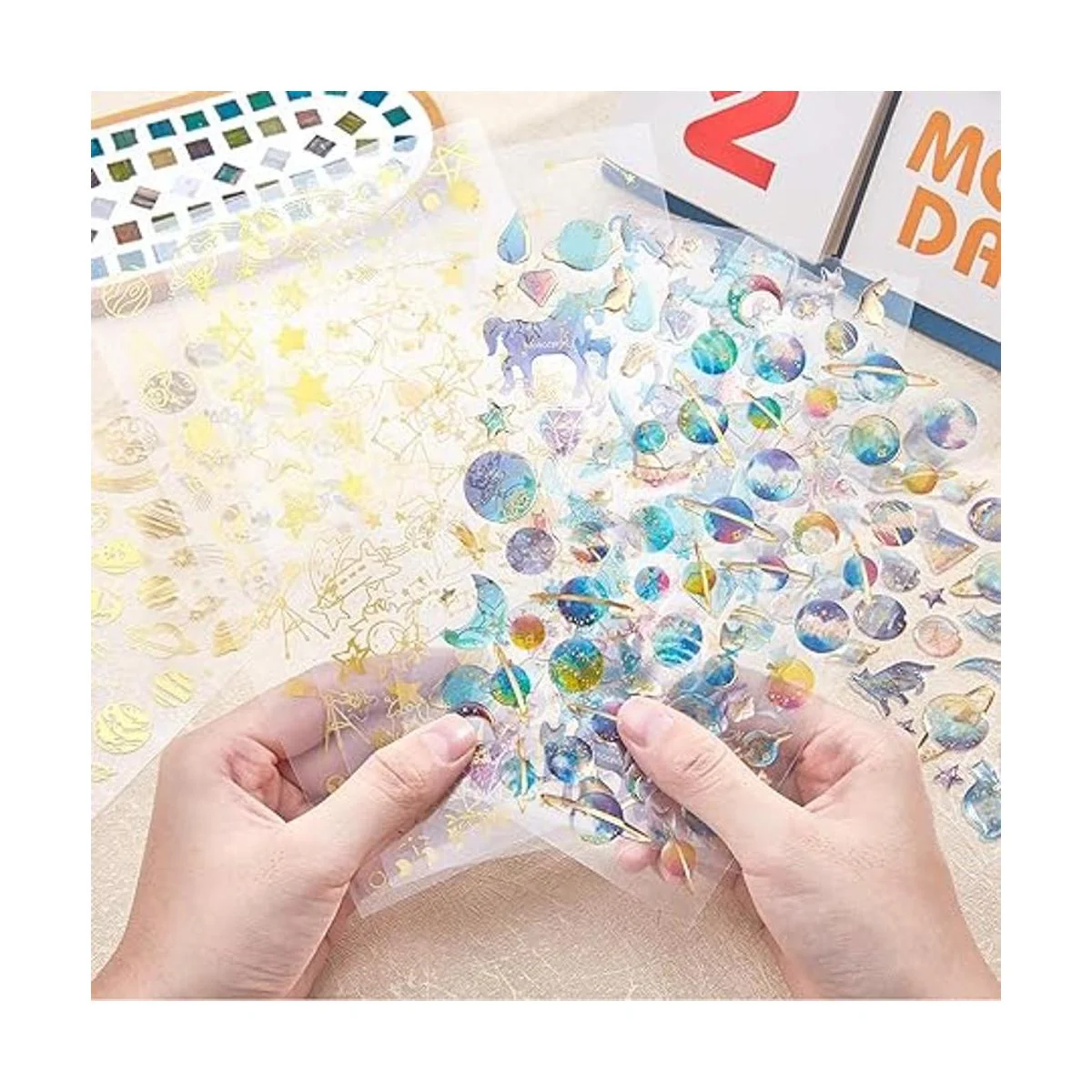 Bonitas calcomanías: las calcomanías súper adorables vienen principalmente en dos tipos: calcomanías coloridas y calcomanías metálicas; los patrones incluyen planeta, cometa, espacio, estrella, luna, sol, OVNI, alienígena, cohete, astronauta, gato, unicornio y diamante; súper lindo y brillante