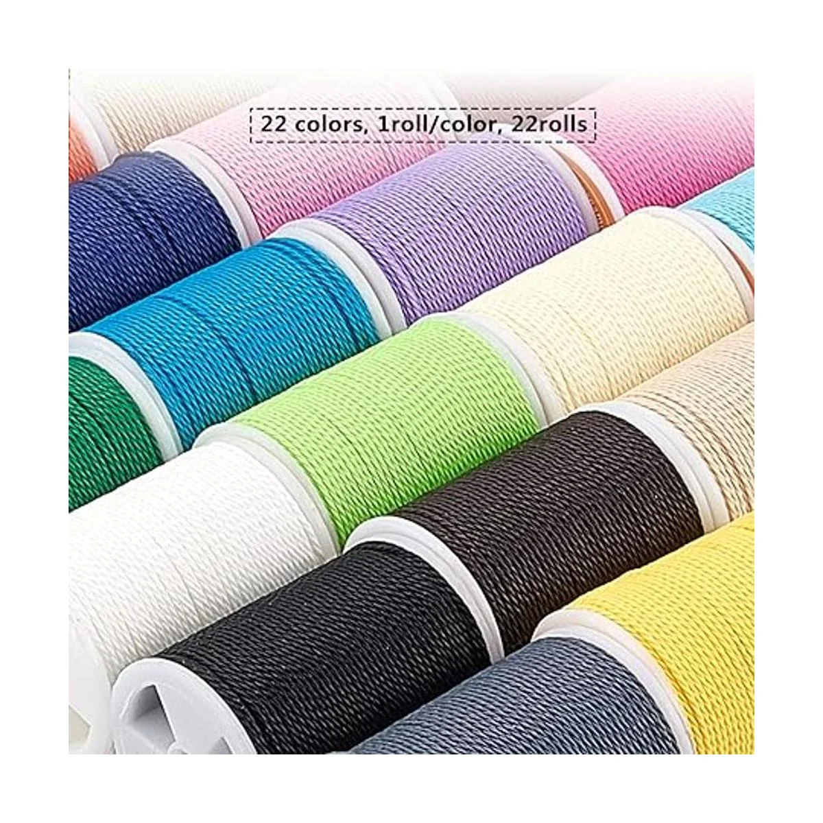 OLYCRAFT Cordón de poliéster encerado de 264 yardas, 0.039 in, hilo encerado, hilo de costura trenzado para pulseras de bricolaje, collar, joyería y pulsera de amistad, 22 colores