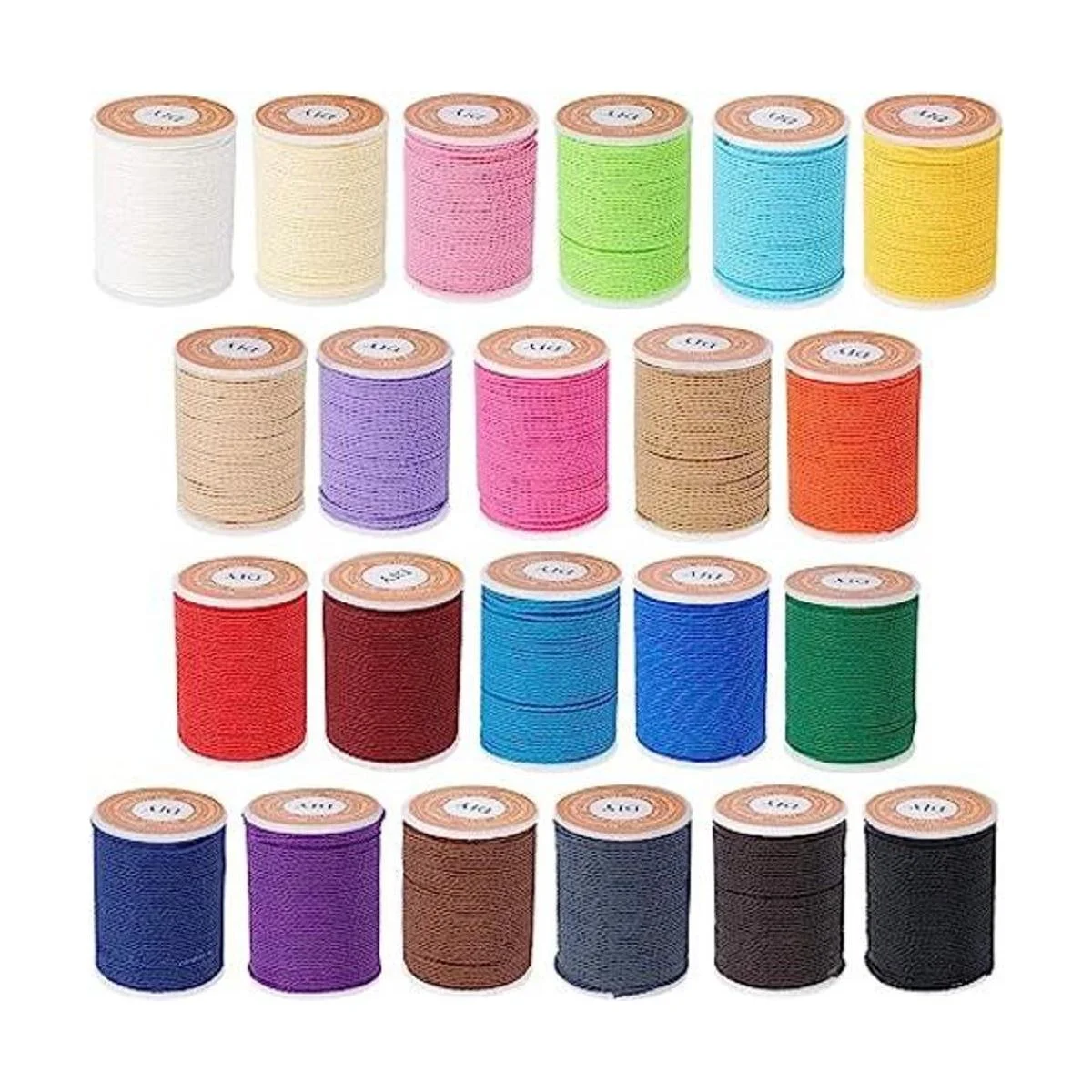 Paquete y tamaño: el paquete incluye cordón encerado de 22 colores, 1 rollo por color, total 22 rollos; 1 rollo de aproximadamente 36.1 ft, total 794.0 ft/264 yardas; tamaño aproximado de 0.039 in de diámetro.