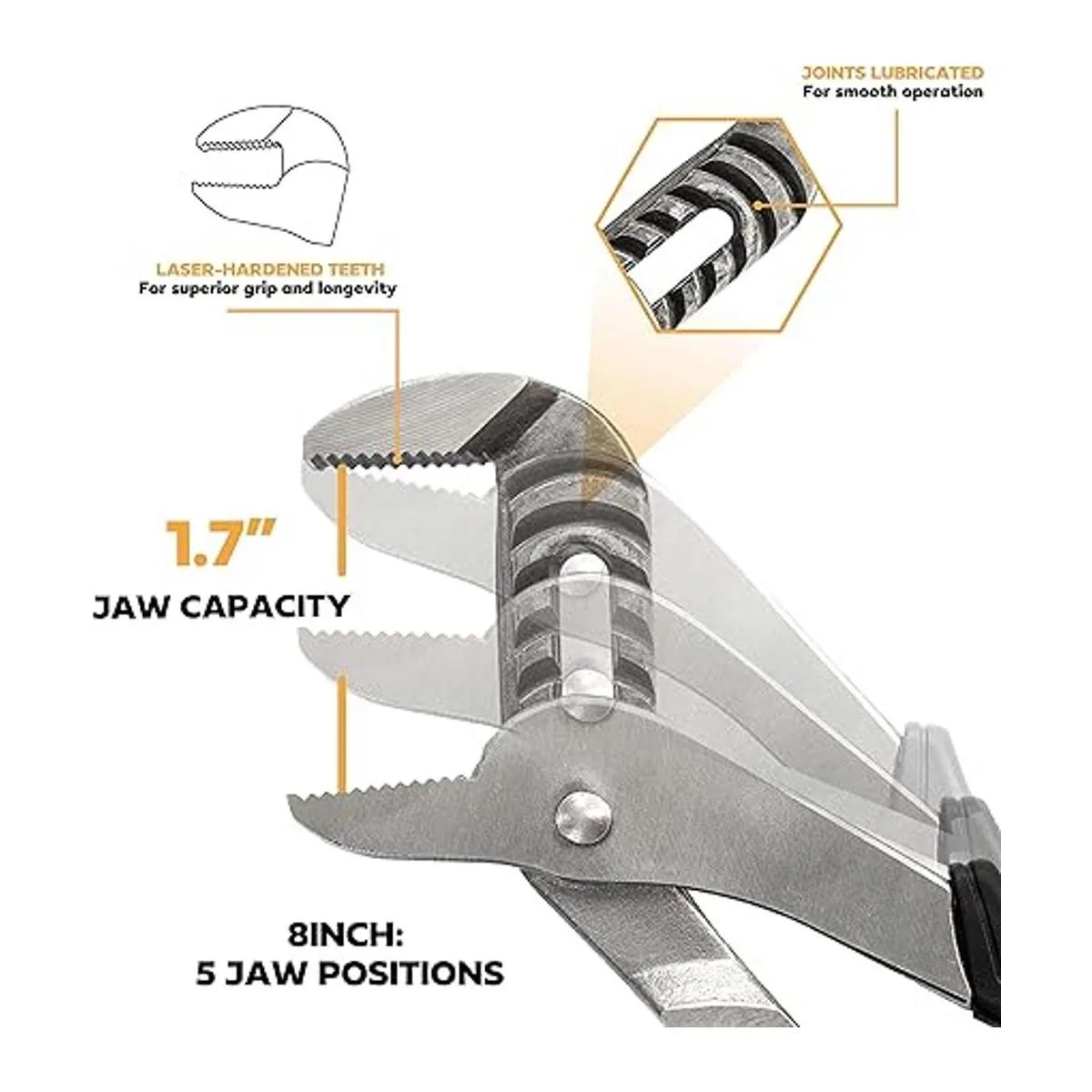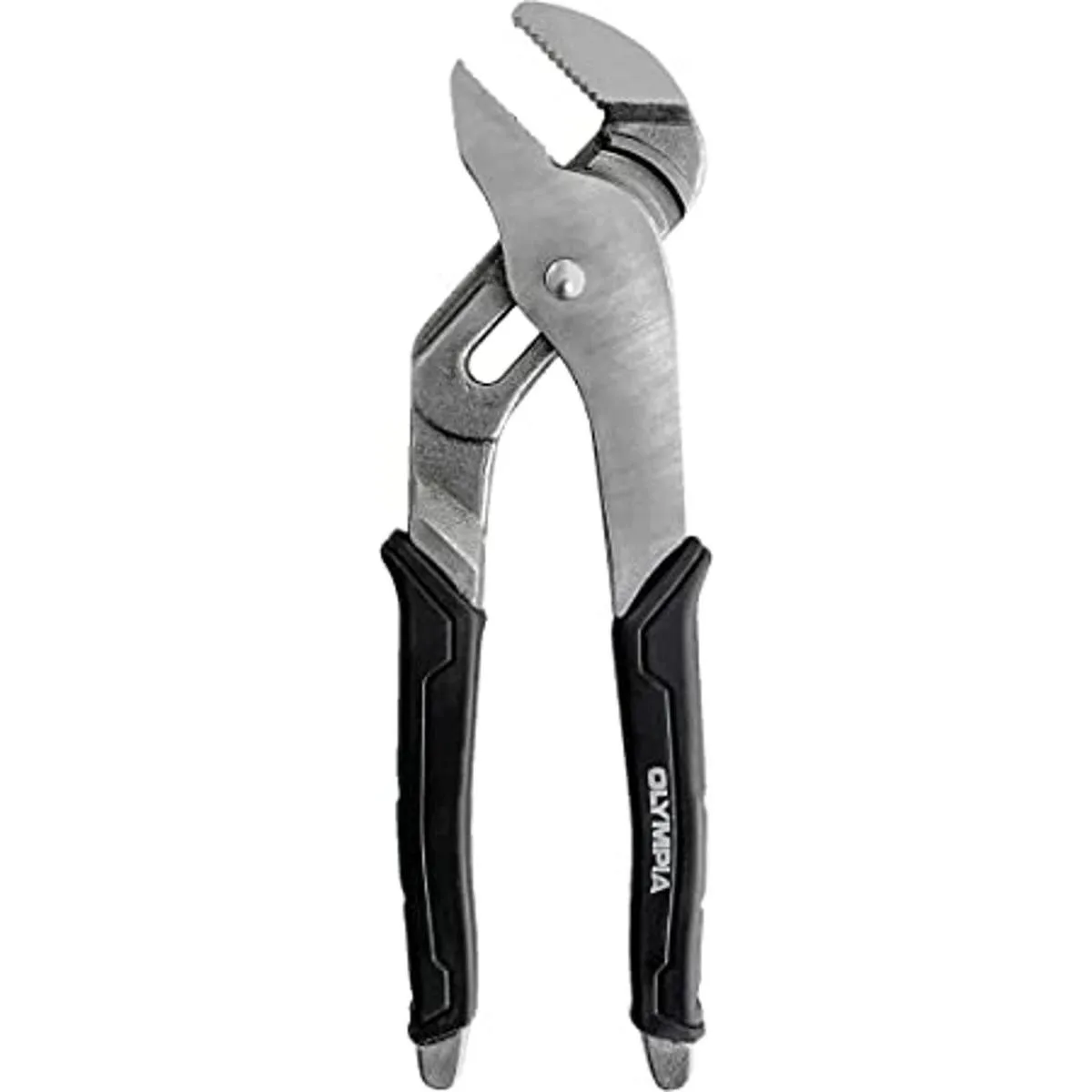 Olympia Tools Alicates de lengeta y ranura, alicates de mandíbula rectos con agarre de cojín, 5 posiciones de mandíbula, capacidad de mandíbula de 1.7 pulgadas, alicates de bomba de agua 8 pulgadas
