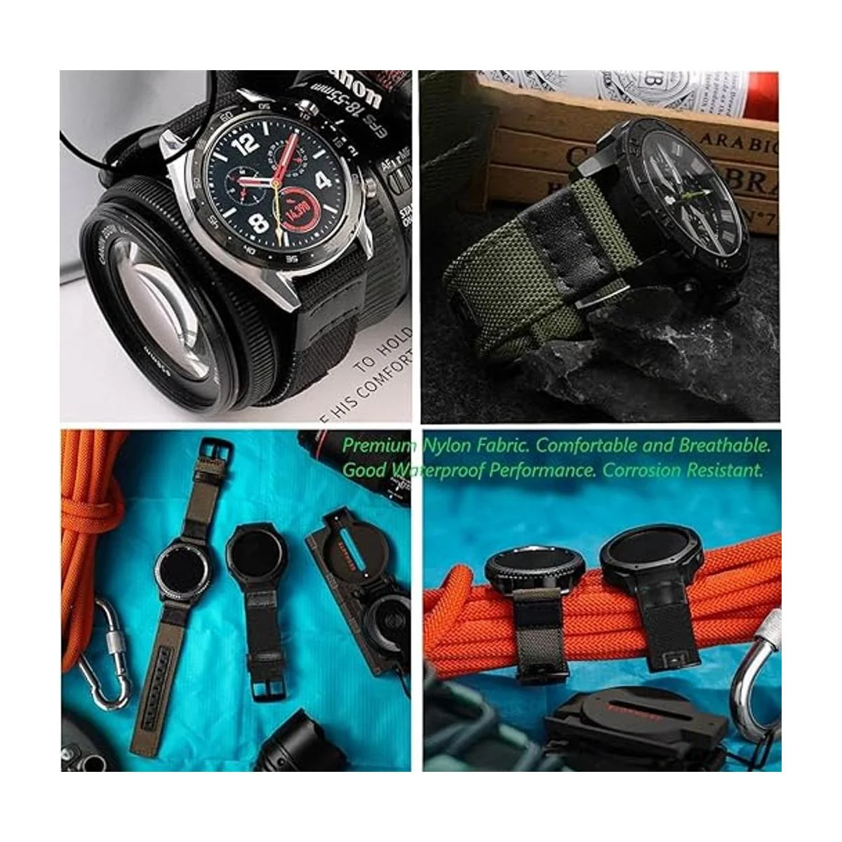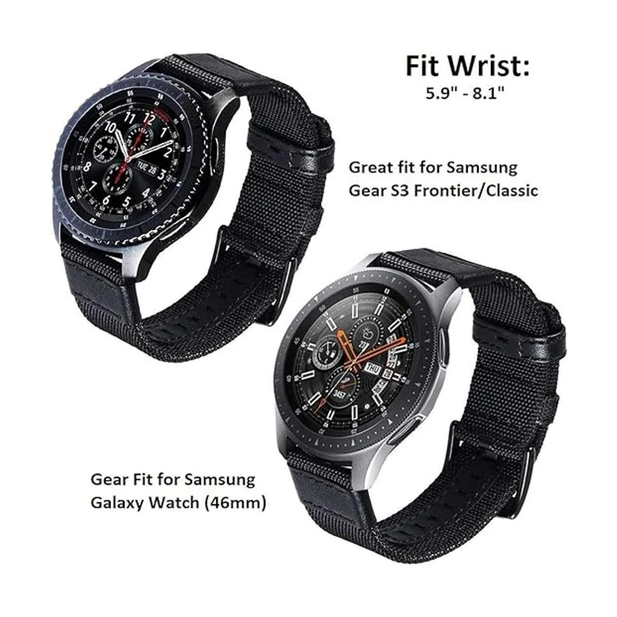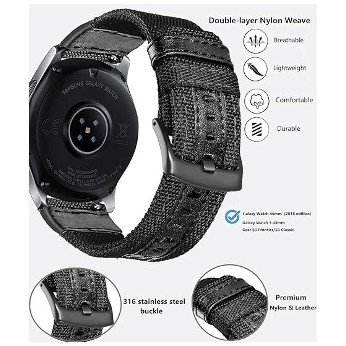 Modelos compatibles: correa de nailon de repuesto de liberación rápida de 0.866 in para Samsung Galaxy Watch3 de 1.772 in, 2019 Galaxy Watch de 1.811 in SMR800, Gears S3 Frontier/Classic, Ticwatch ProSmart, también se adapta a cualquier reloj inteligente con marco de 0.866 in.