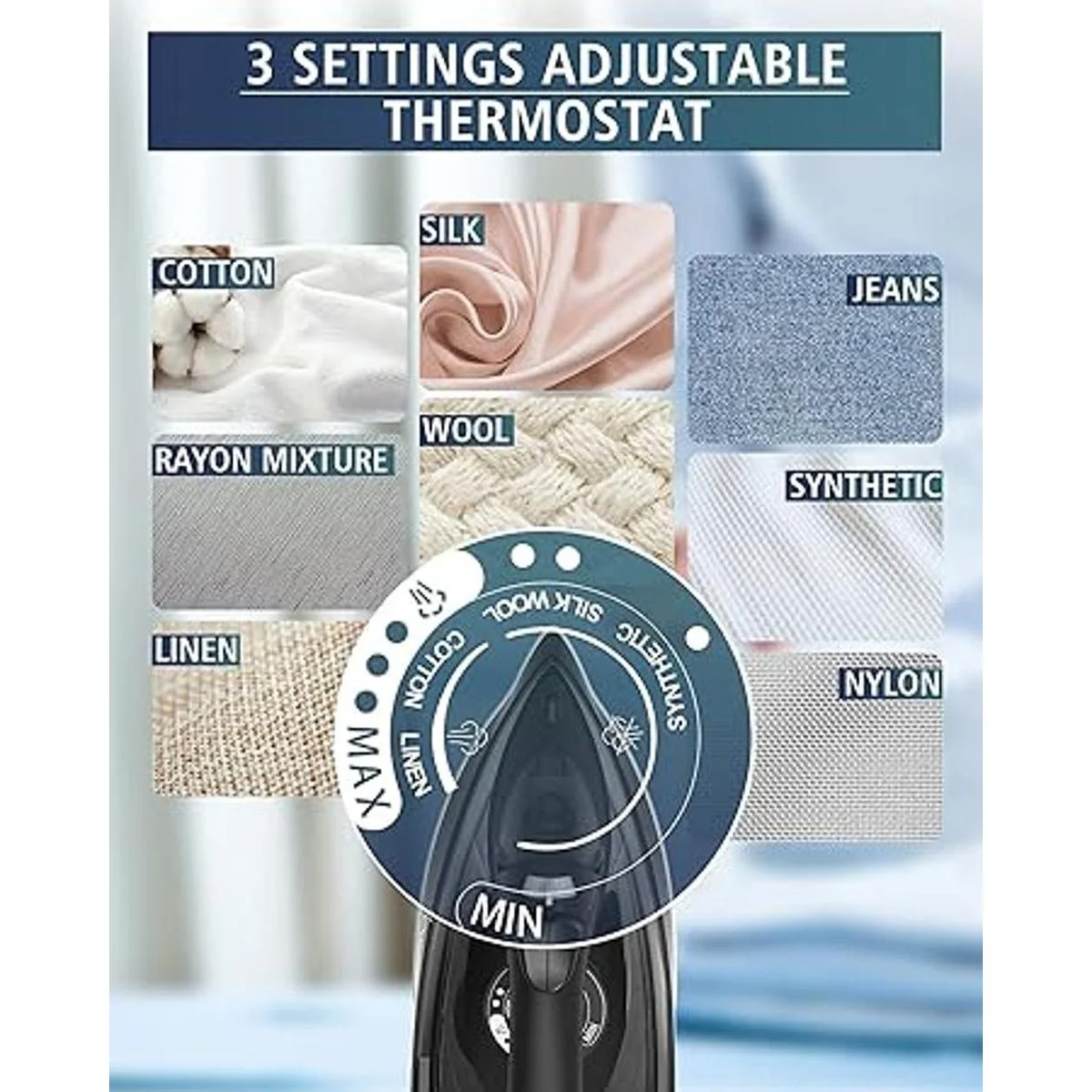 Amplia aplicación: la plancha de vapor para ropa está equipada con 3 ajustes de temperatura, lo que permite su uso en una variedad de tejidos, incluyendo nailon, lana, lino, algodón, seda, sintético, etc. La plancha para ropa proporciona la temperatura óptima para cada tipo de ropa, a diferencia de otras planchas de una temperatura.