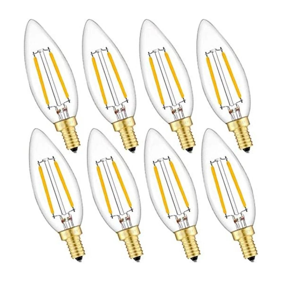 OMAYKEY Bombilla LED de 2 W, equivalente a 25 W, 2700 K, luz blanca cálida, 250 lúmenes, base E12, bombillas de cristal transparente Edison C32, bombillas LED regulables, 8 unidades
