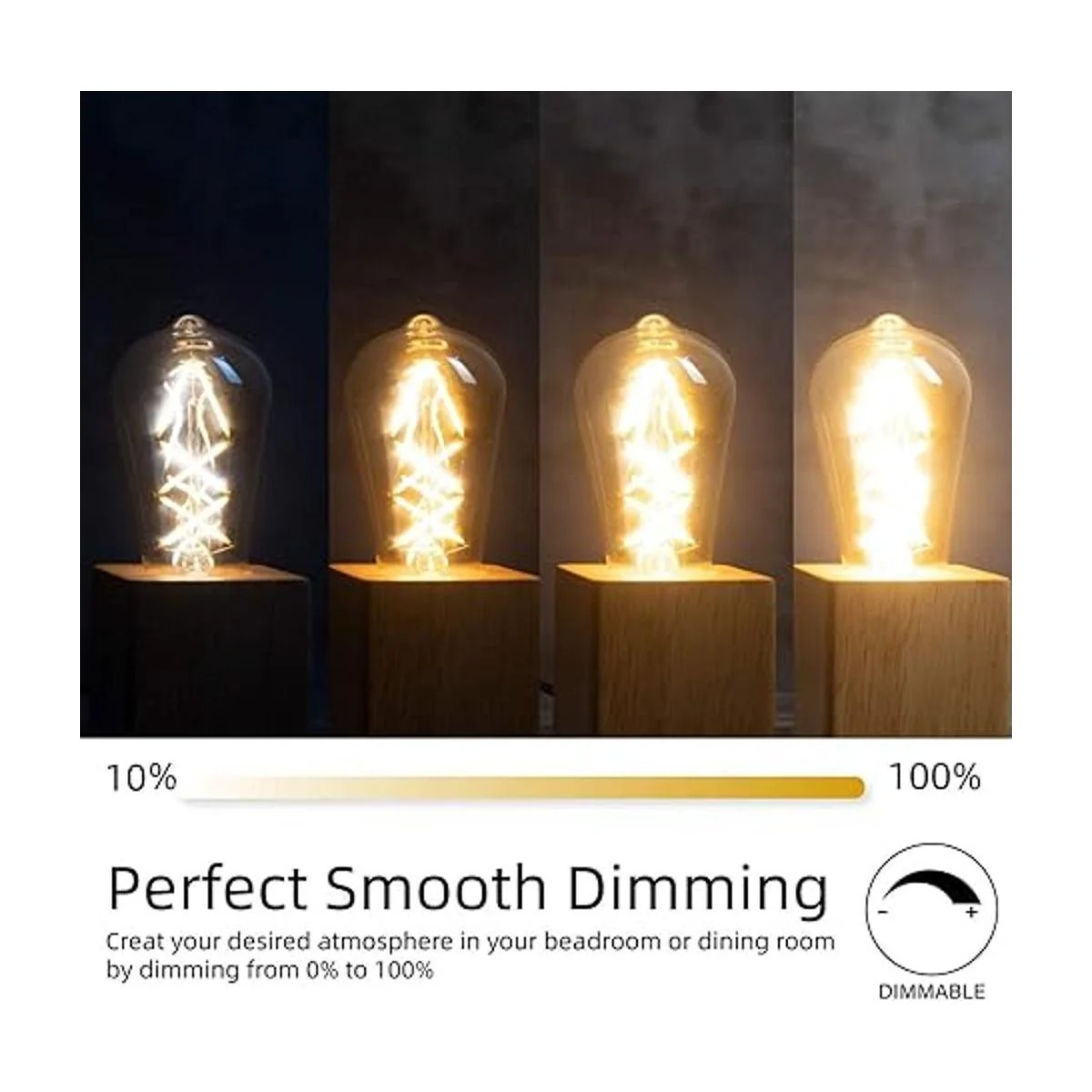 1. Luz vintage y bombillas Edison: diseñada en el reflejo de las bombillas originales de filamento Edison, nuestra bombilla LED Edison equivalente a 60 W proporciona una temperatura de color cálida vintage, de 2700 K, que da un aspecto cálido y antiguo ámbar que es perfecto para lámpara retro. Los 600 lúmenes hacen que sea la bombilla más brillante del mercado.
