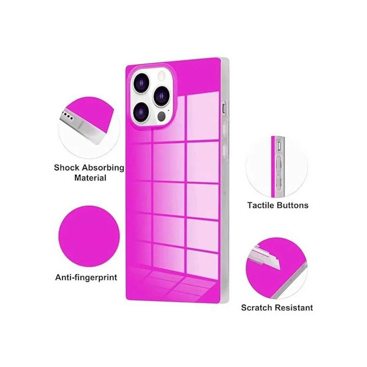 Bonita funda cuadrada para iPhone 14 Pro, vibrantes colores fluorescentes neón con los bordes cuadrados de moda hacen que tu teléfono sea muy elegante, lindo, glamuroso y llamativo.