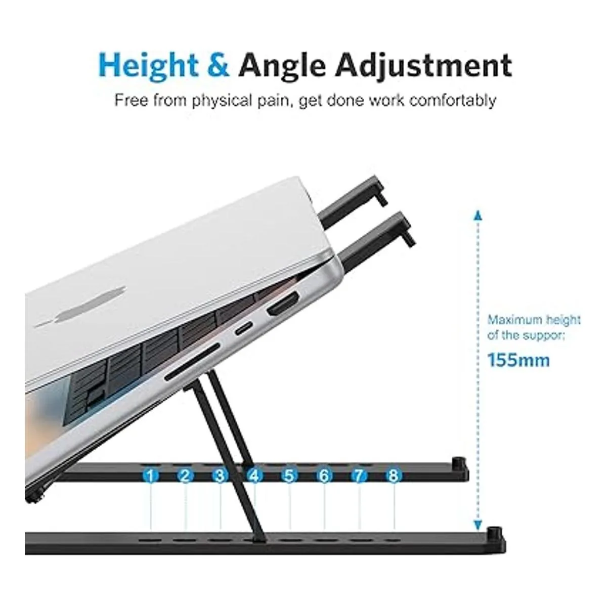 Ajuste de altura de 8 niveles: este elevador para portátil cuenta con un diseño ergonómico, que se puede ajustar a ocho alturas diferentes para satisfacer tus diversas necesidades. Reduce los dolores de cuello mientras te permite trabajar en tu punto de vista preferido.