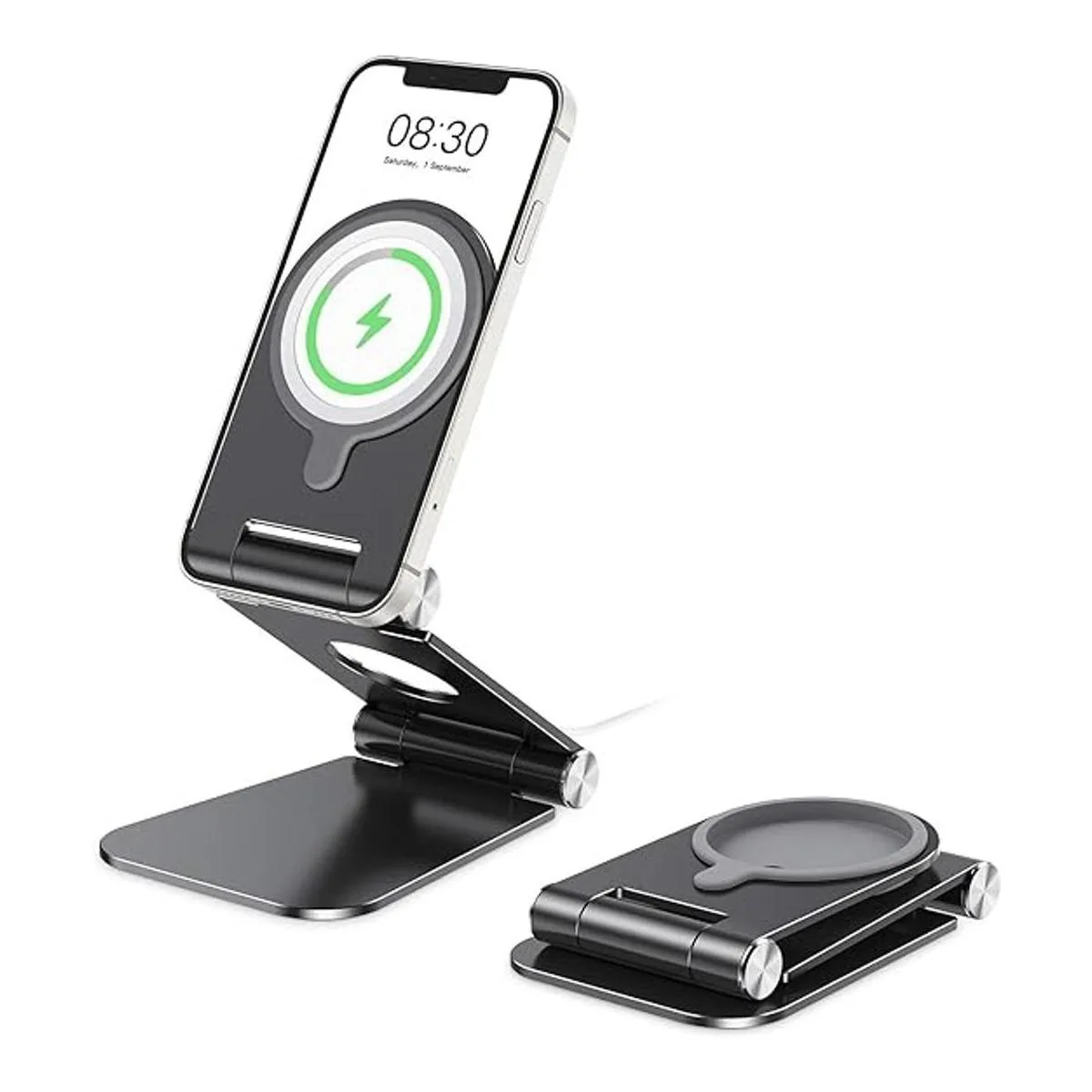 OMOTON Soporte plegable para cargador MagSafe, accesorios Magsafe diseñados para iPhone 141312 Pro MaxProMini, cargador MagSafe no incluido, color negro