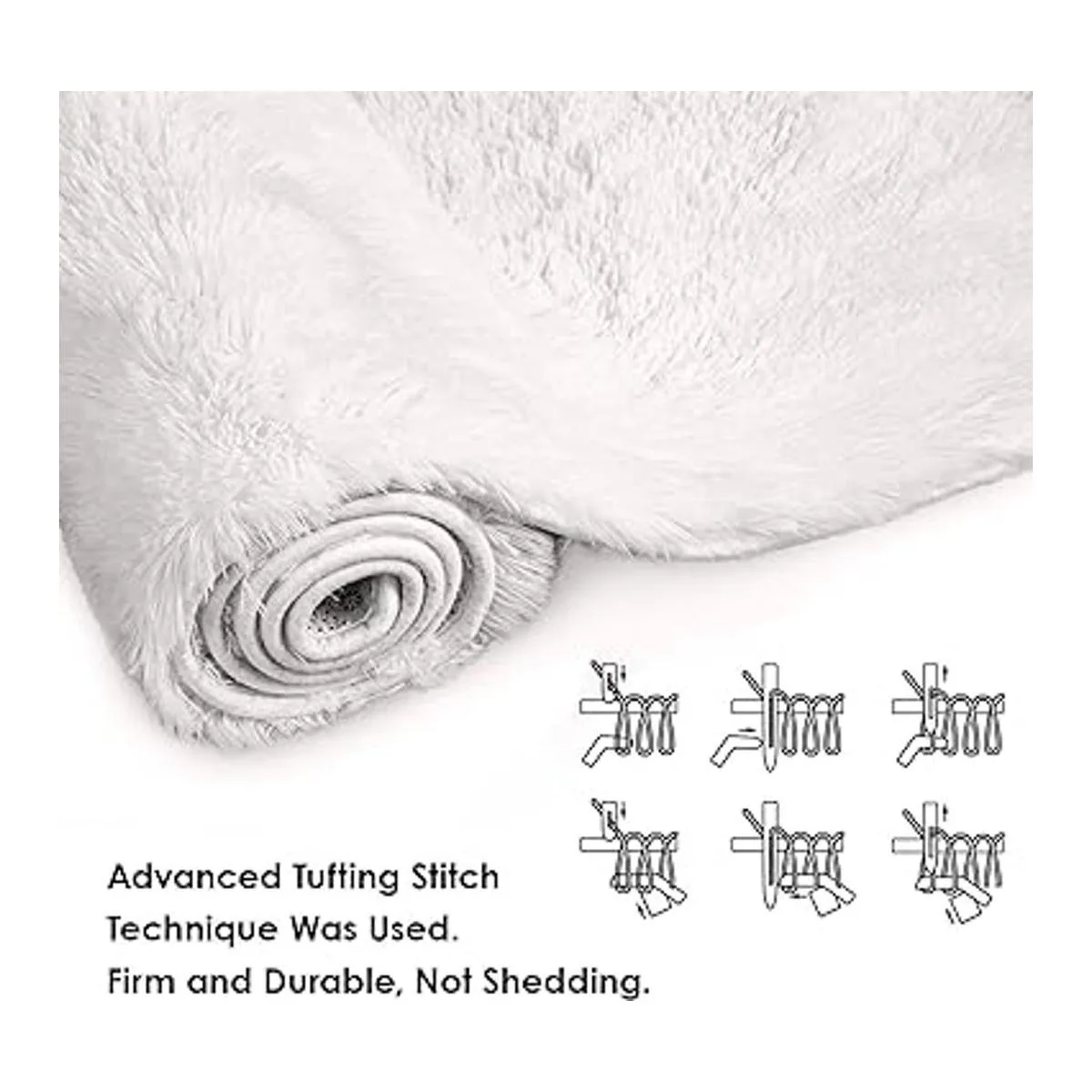 Sensación de pie en la nube: la superficie de nuestra alfombra esponjosa está llena de piel sintética de lujo de 1.6 in de largo, que es tan peluda y se siente como una nube peluda; capa intermedia de esponja de alta densidad supersuave para aliviar la fatiga de las piernas y evitar pisar en azulejos fríos