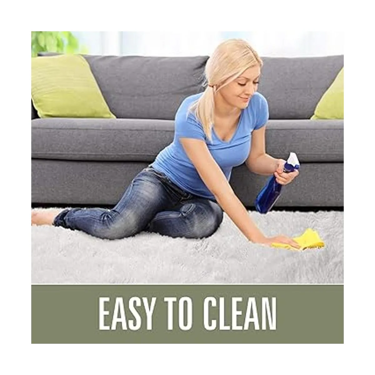 Instrucciones de mantenimiento: esta alfombra esponjosa está hecha de fibra de poliéster segura y resistente a las manchas, simplemente aspira con una aspiradora de baja potencia; para una limpieza más profunda, limpia la mancha con jabón suave y agua y seca al aire a temperatura ambiente