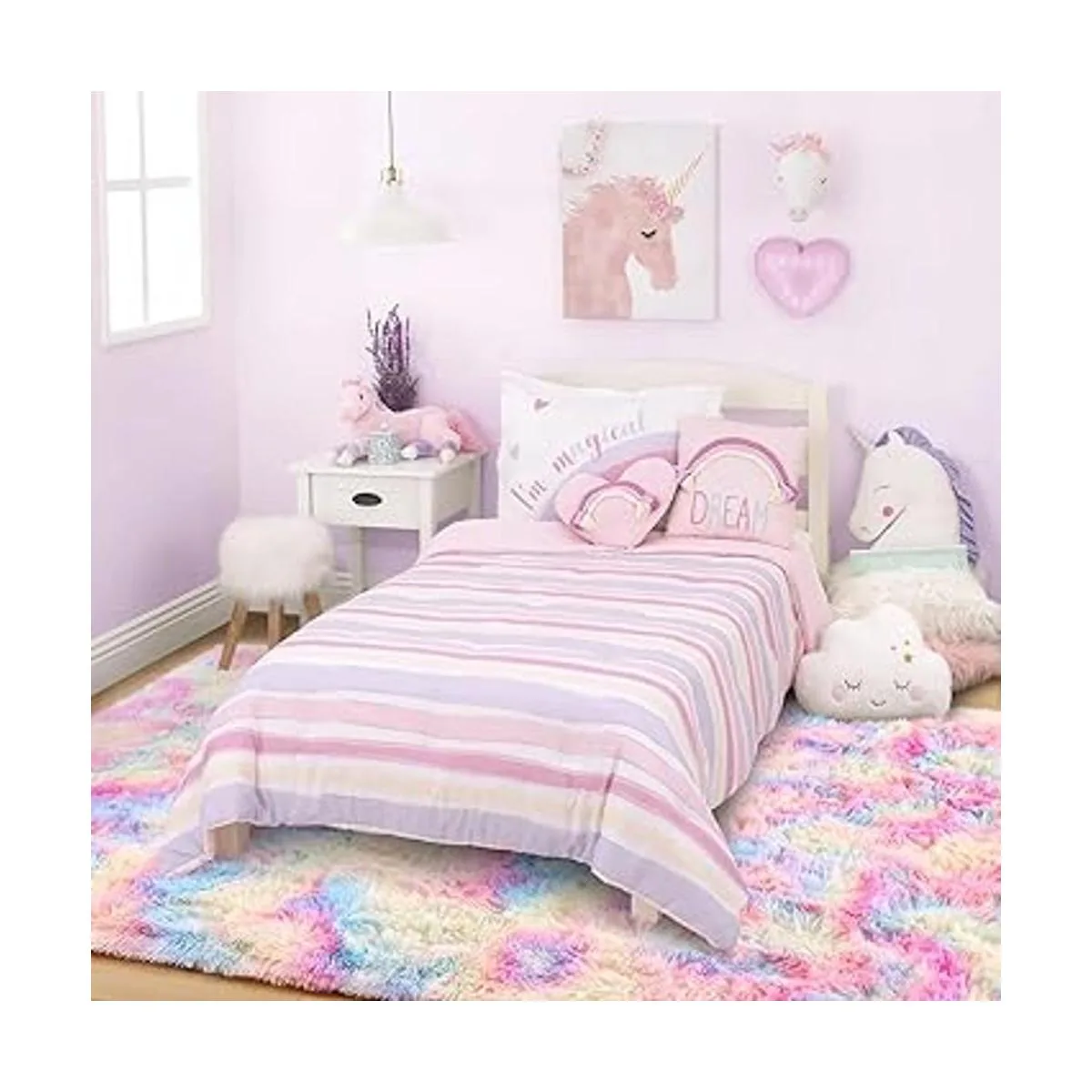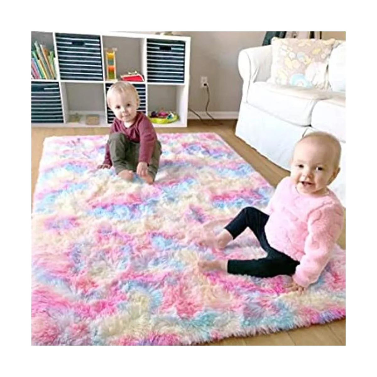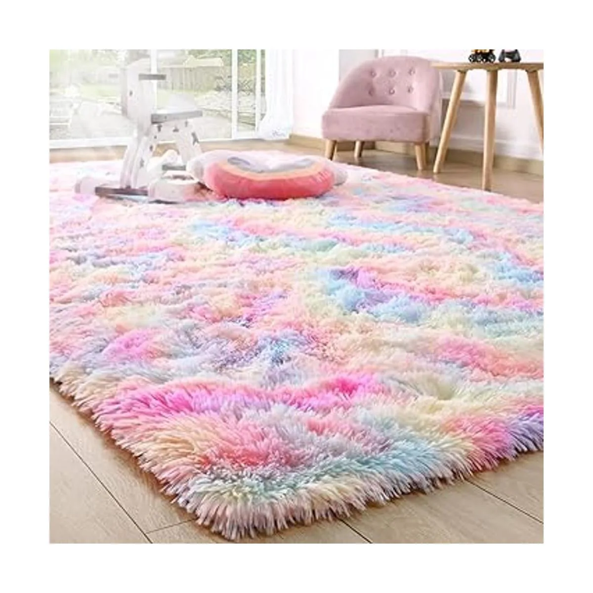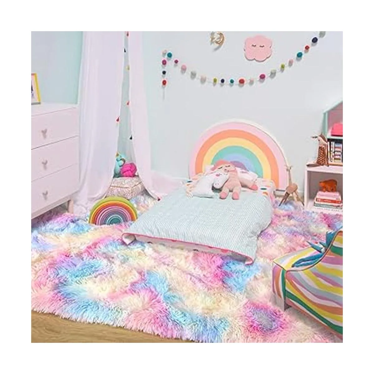 Ompaa Alfombra suave y esponjosa de arcoíris para niños, para dormitorio de niñas, 4 x 6 pies, decoración de habitación de unicornio pastel, alfombras de teñido anudado Kawaii para dormitorio de adolescentes, alfombra lanuda para habitación de princesa de bebé