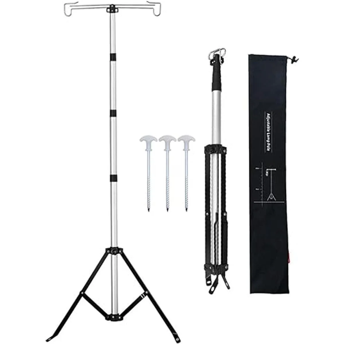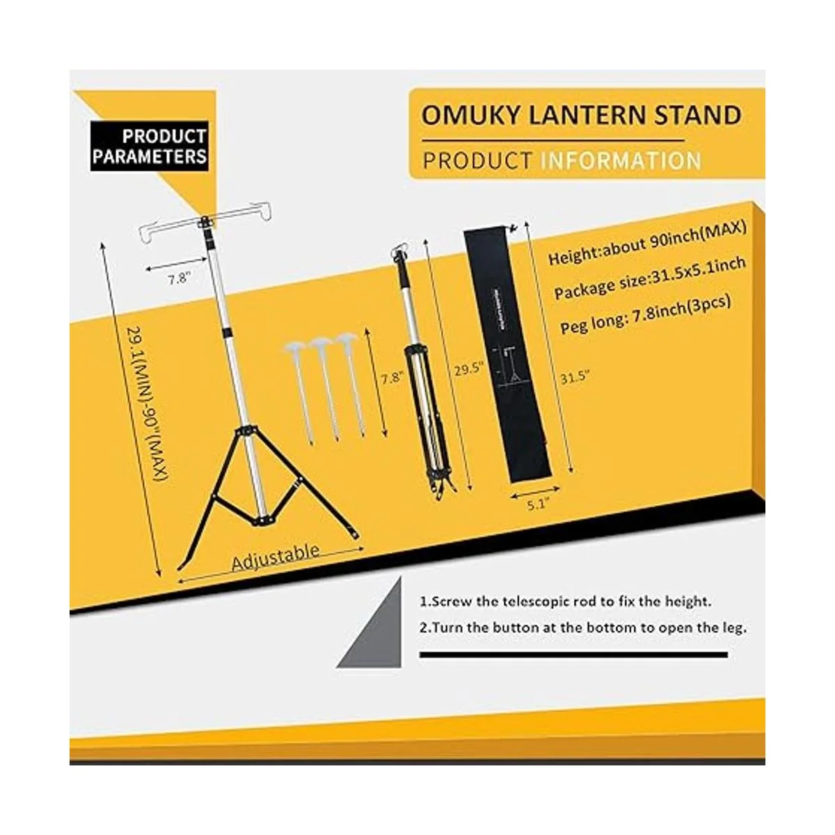 Altura ajustable: la altura del trípode de la lámpara se puede ajustar para adaptarse a diferentes ocasiones y necesidades, te permite colgar el farol a una altura más segura y adecuada. La altura se puede ajustar entre 75 y 90.6 in. El soporte de luz multifuncional es ideal para acampar al aire libre.