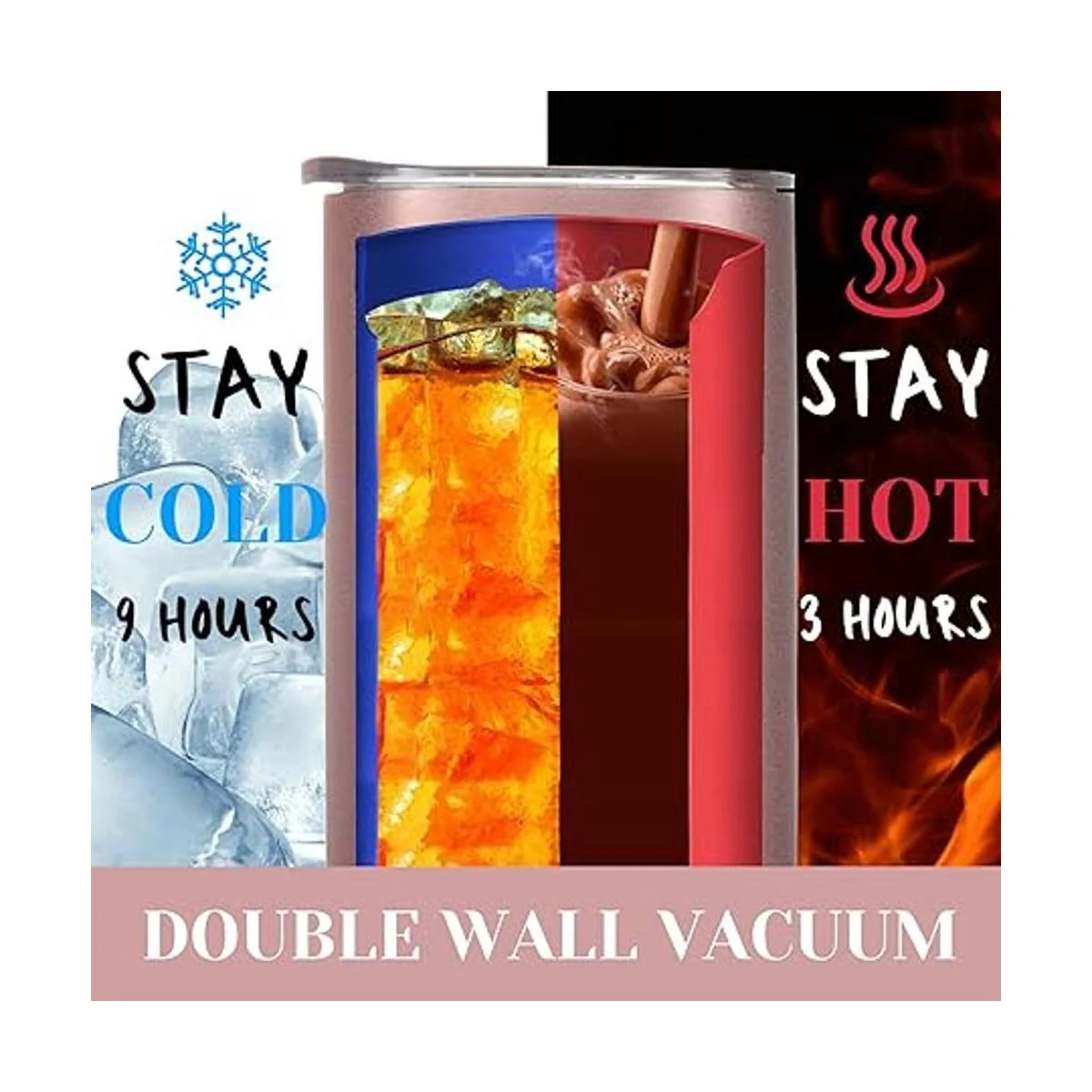 Material seguro: sin BPA, acero inoxidable 18/8 304 de grado alimenticio, ecológico y no tóxico. Doble pared aislada al vacío mantiene tus bebidas frías 9 horas, calientes 3 horas.