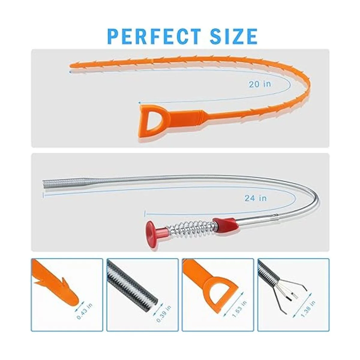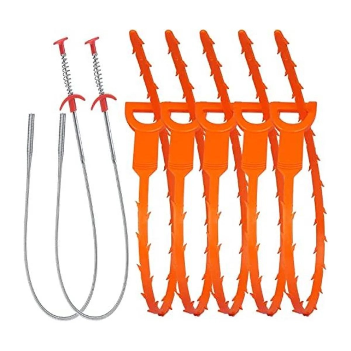 ONEHERE Juego de 7 herramientas para eliminar obstrucciones de drenaje de cabello, 20 pulgadas, herramientas de limpieza para desage de 24 pulgadas, herramientas de limpieza para fregadero de cocina, bañera de baño, alcantarillado, inodoro