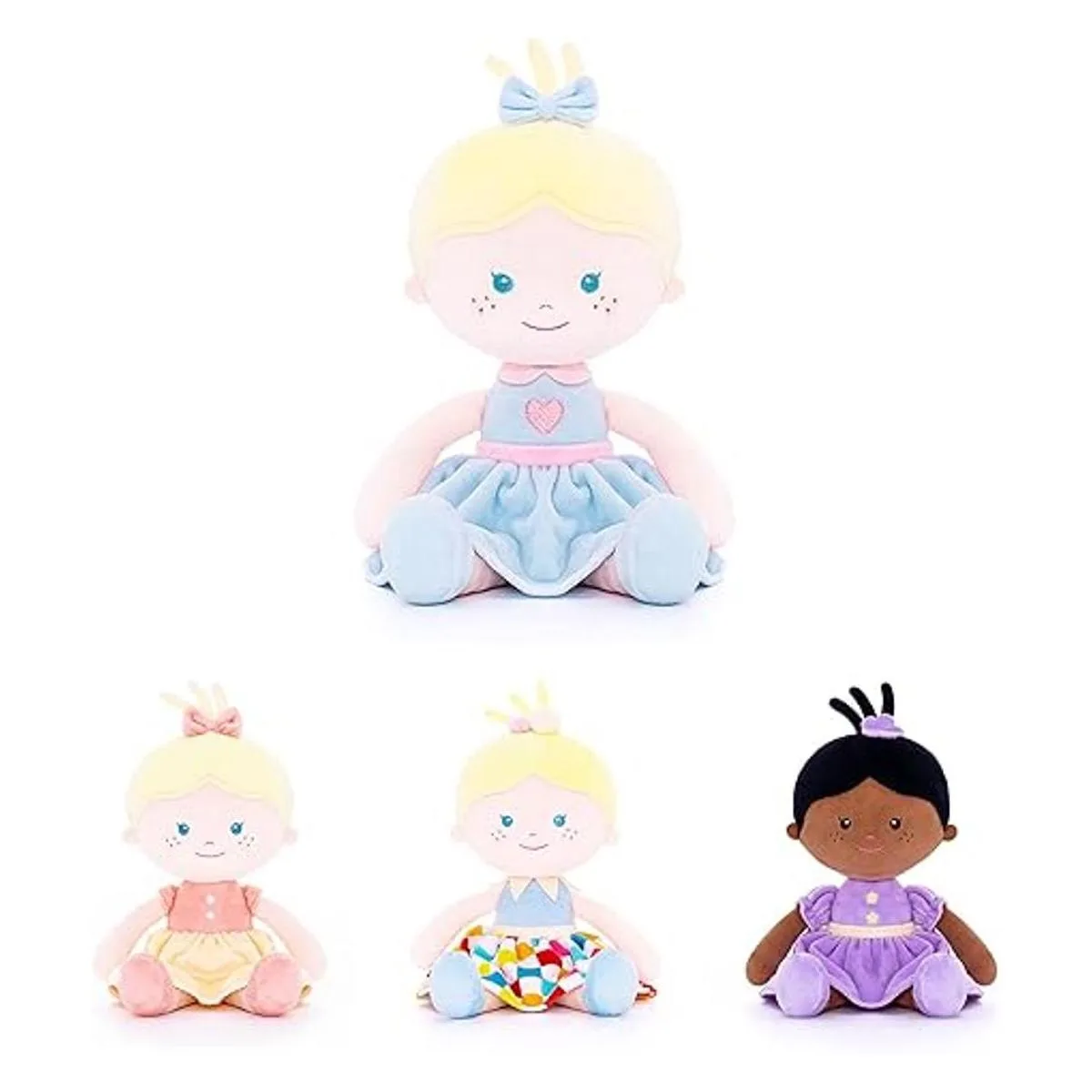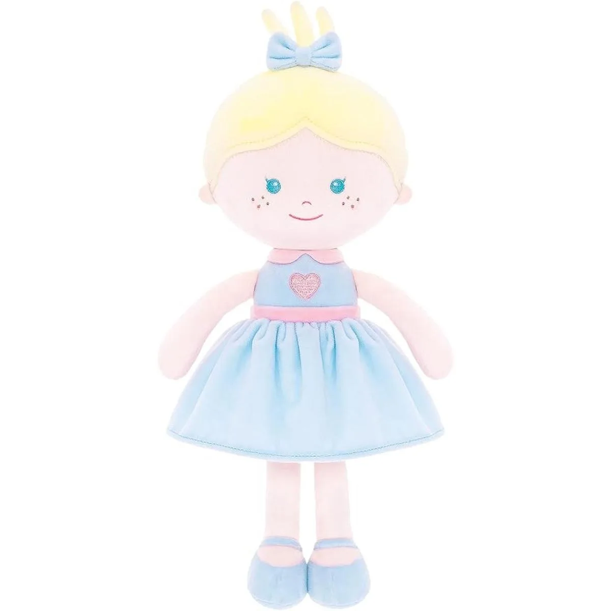 Onetoo Muñeca de bebé suave para niñas, muñeca de trapo de felpa para dormir, muñeca de primer bebé, vestido de amor azul de 14 pulgadas serie Milly
