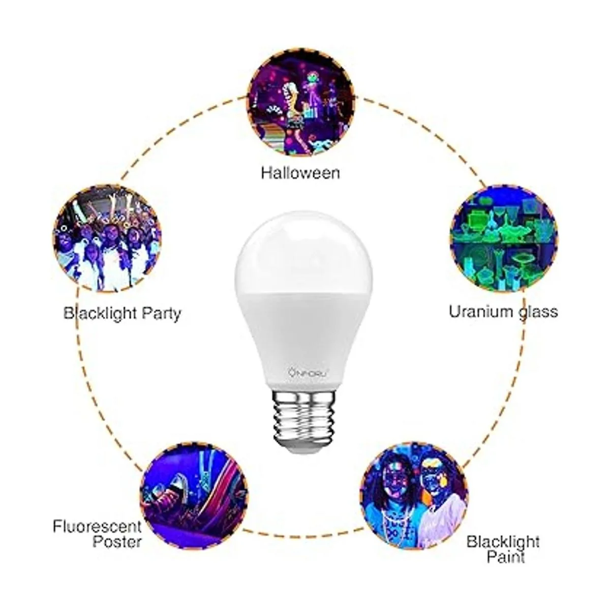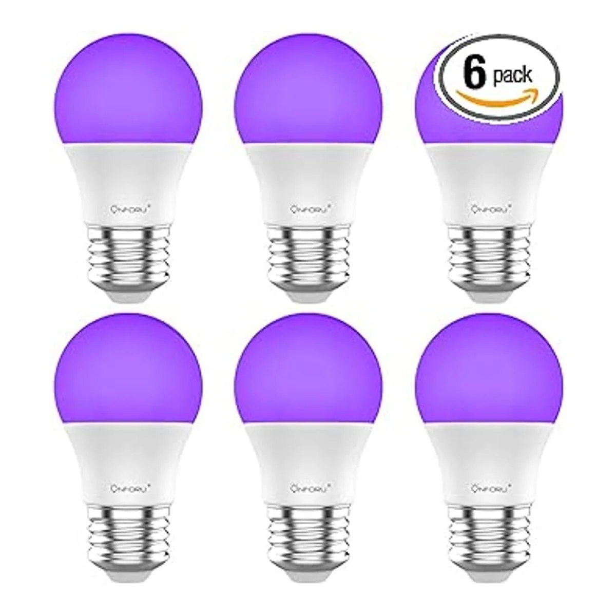 Onforu Bombillas LED negras de 9 W, bombilla negra A19 E26 equivalente a 75 W, bombilla morada de 385400 nm, brilla en la oscuridad para Halloween, fiesta de luces negras, pintura corporal, póster fluorescente, brillo neón, paquete de 6