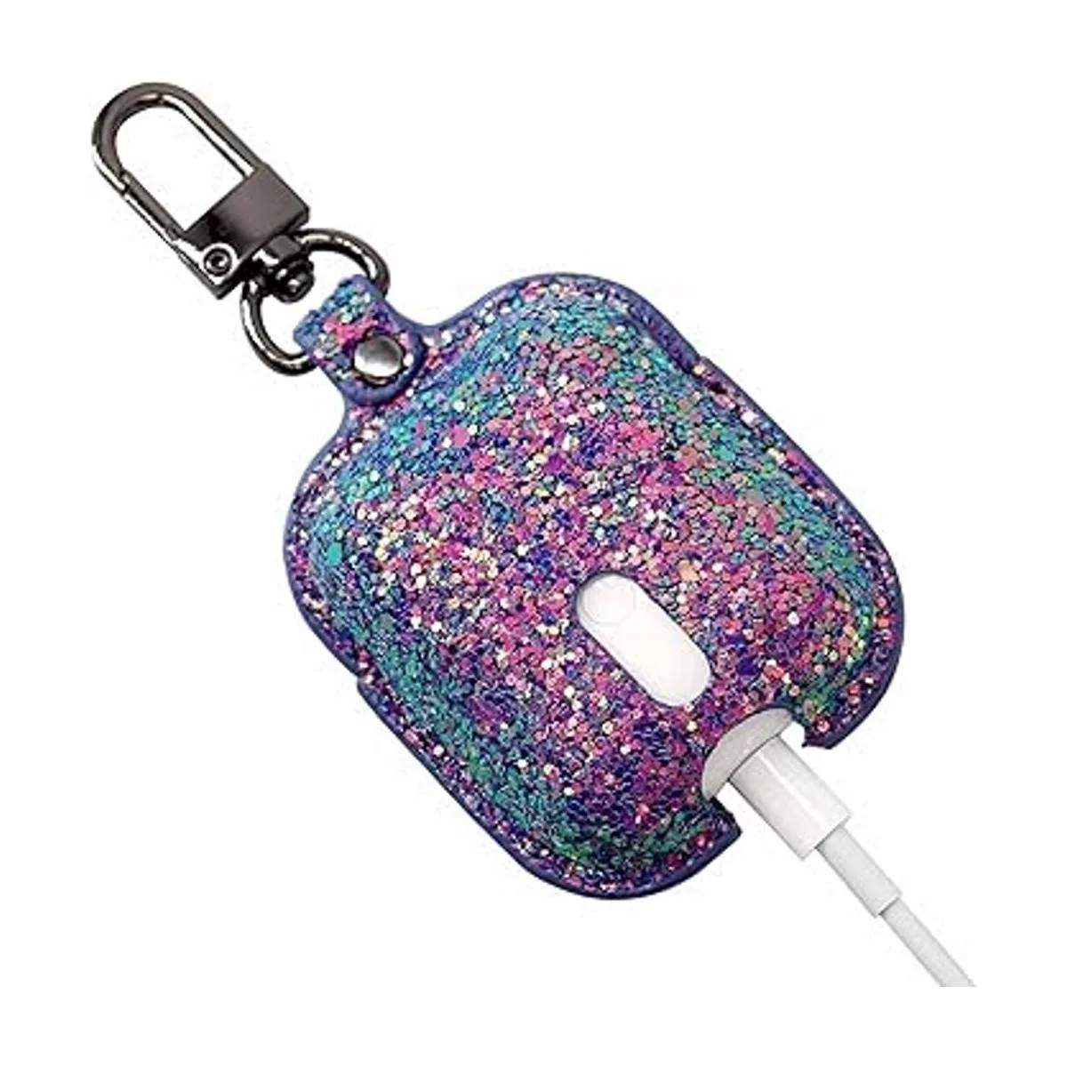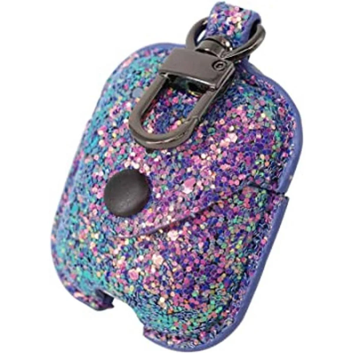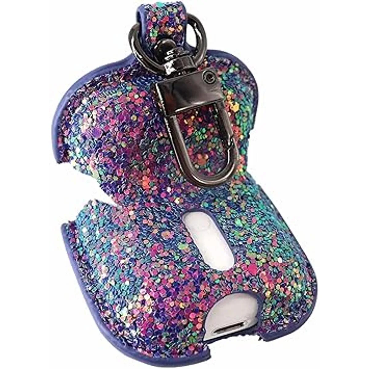 ONGHSD Bling Funda de transporte de piel sintética brillante para AirPods 1 y 2, funda de carga para mujeres y niñas, funda protectora con purpurina con bolsillo de lentejuelas para AirPods de 1 generación morado