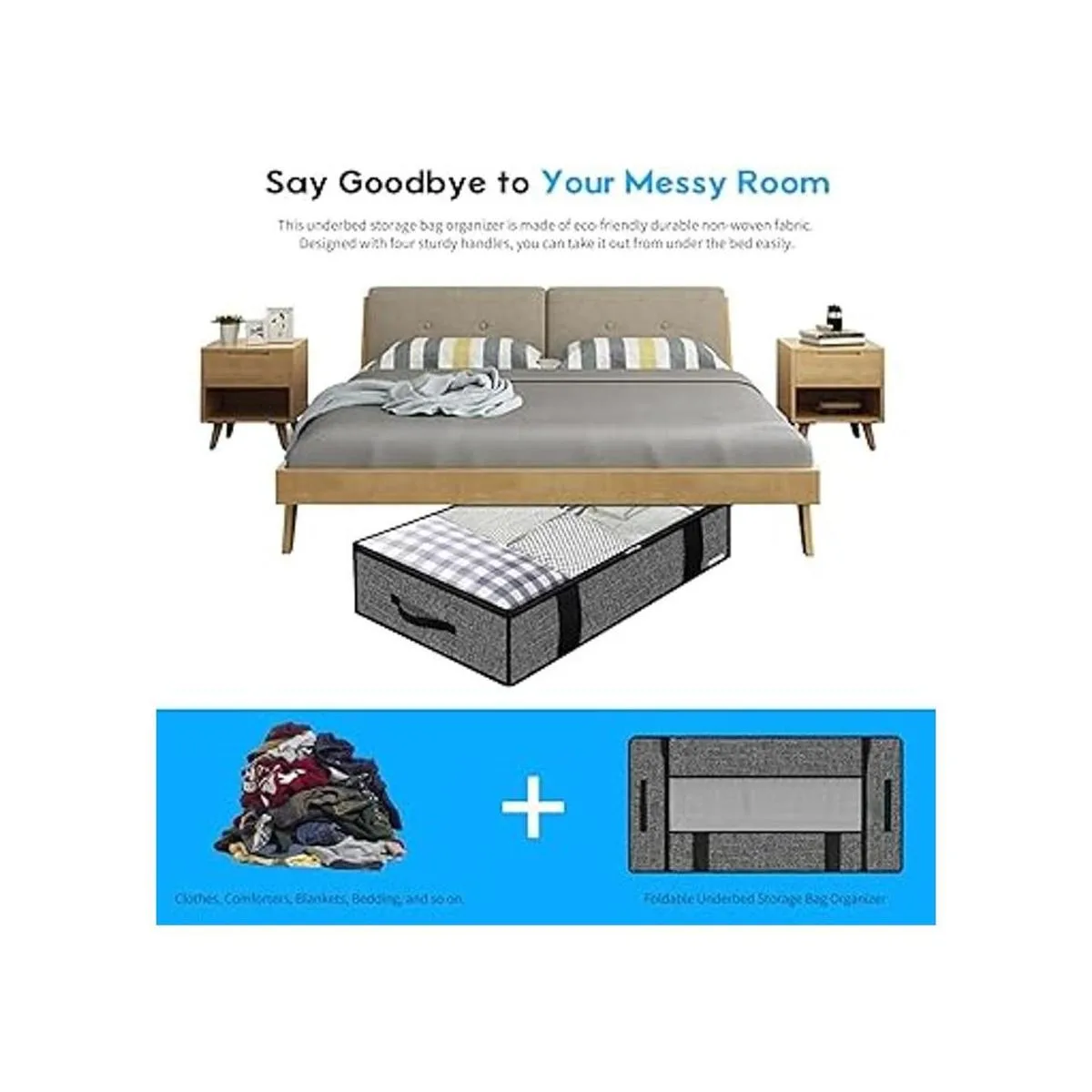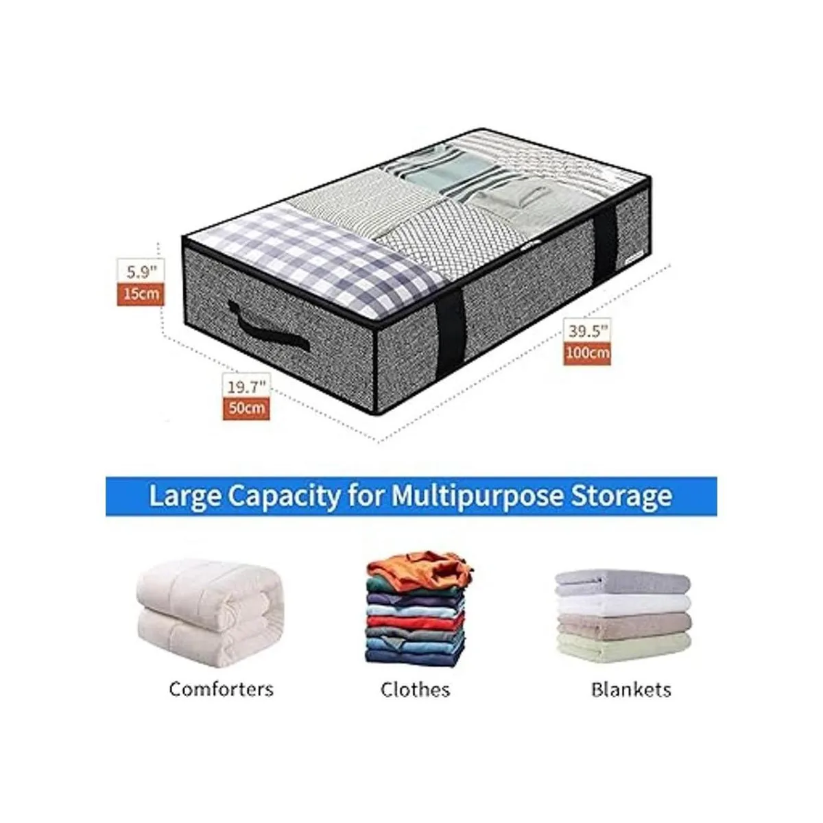Opción de almacenamiento multiusos: esta bolsa de almacenamiento para debajo de la cama encaja perfectamente debajo de tu cama. Ideal para guardar ropa, edredones, mantas, edredones fuera de temporada, ropa de cama, almohadas, prendas, suéteres, etc. Mantén tu armario ordenado y limpio.