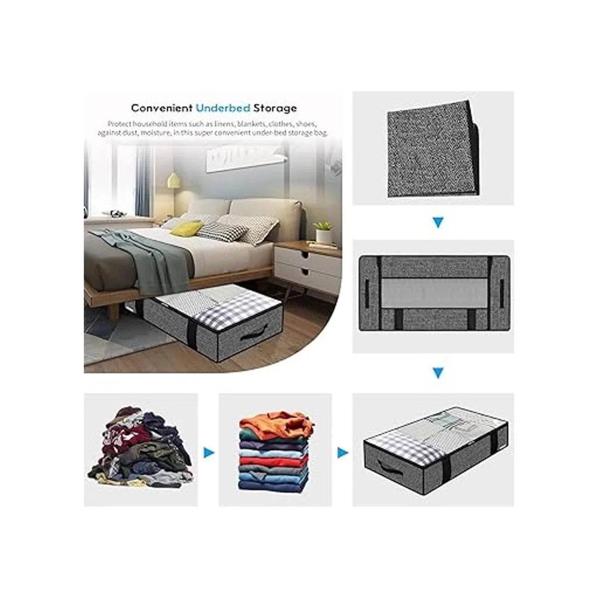 Onlyeasy Bolsas de almacenamiento grandes para debajo de la cama 2 unidades con 4 asas y 2 cierres, para mantas y edredones.Organizadores plegables con ventana transparente