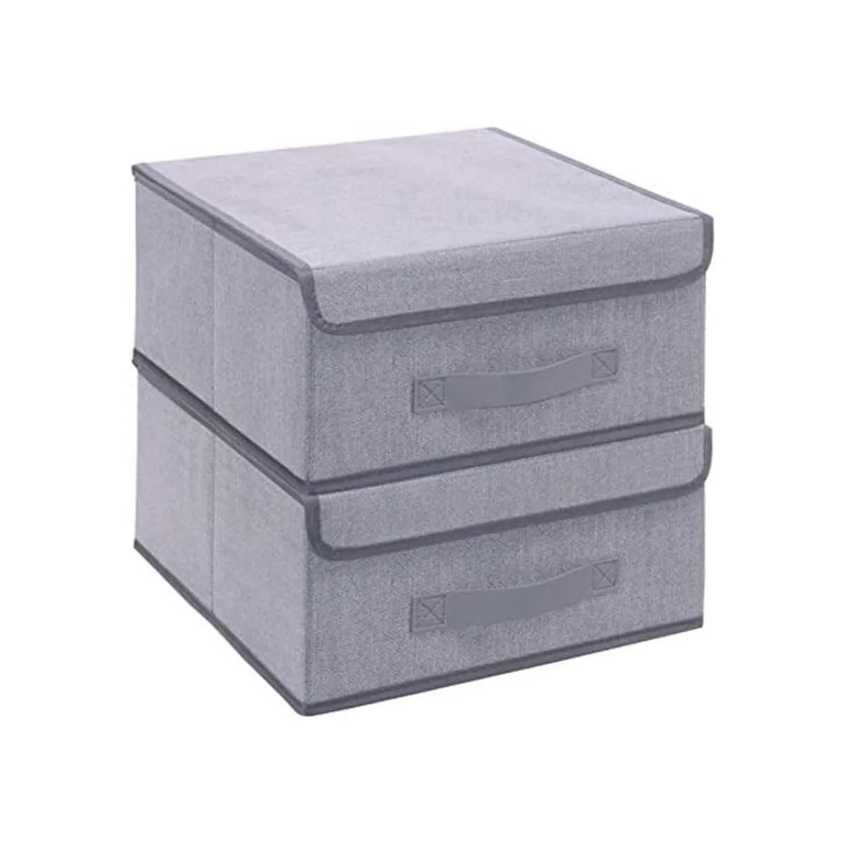 Onlyeasy MXDLB2P Contenedores de almacenamiento plegables con tapa, caja de almacenamiento, cesta de cubos, organizador de armario, paquete de 2 con asas de cuero para armario, dormitorio, 13 x 13 pulgadas, gris similar al lino, color gris