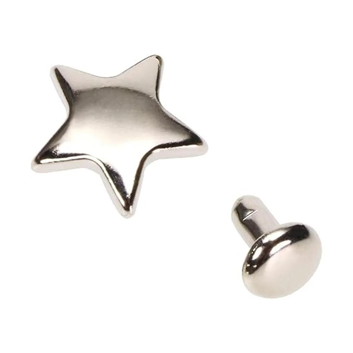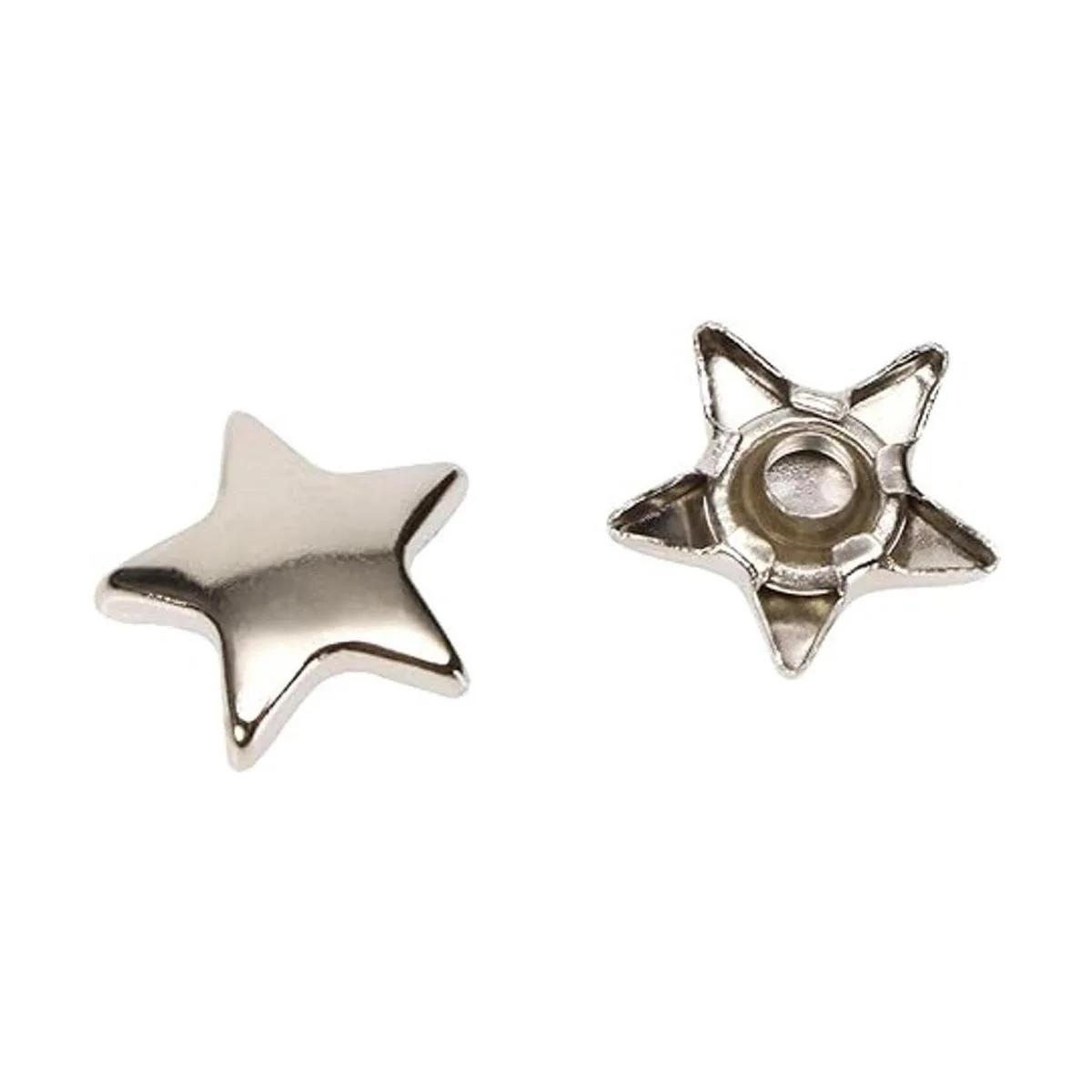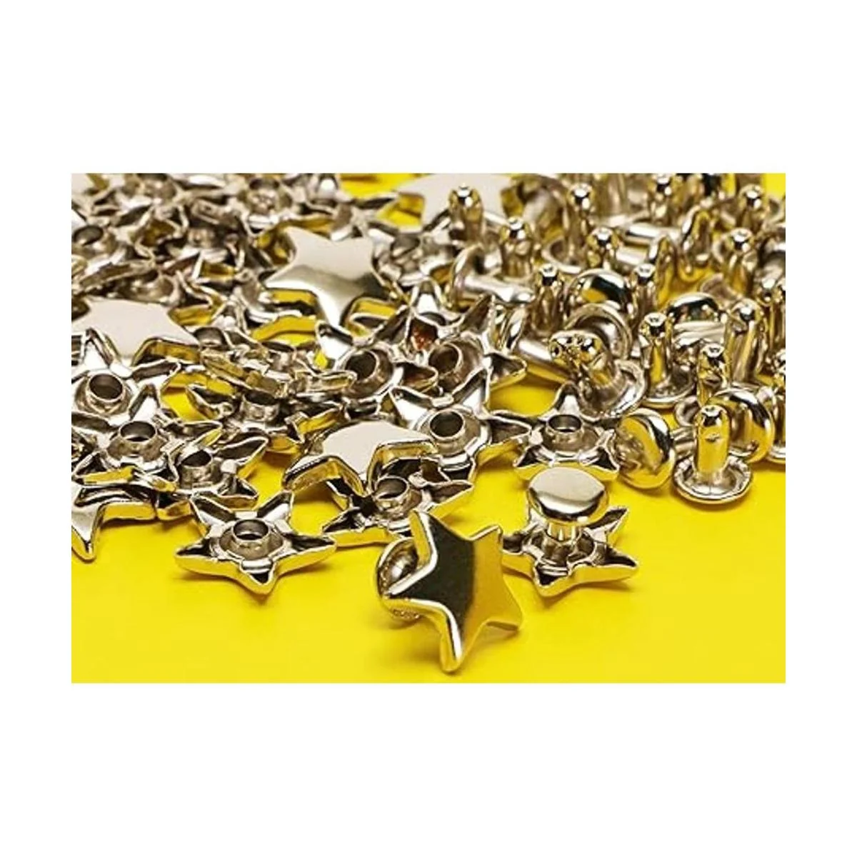 ONLYKXY 50 remaches de estrella de 0.472 in para cuero, remaches para ropa, clavos para ropa plata